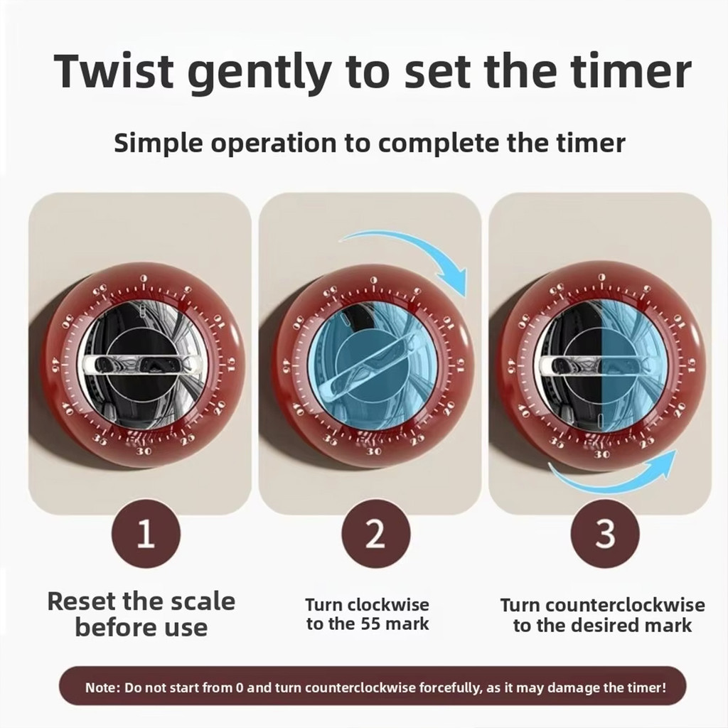 Kitchen Mechanical Timer with Magnetic Back for Cooking Time Management Visual Alarm Clock