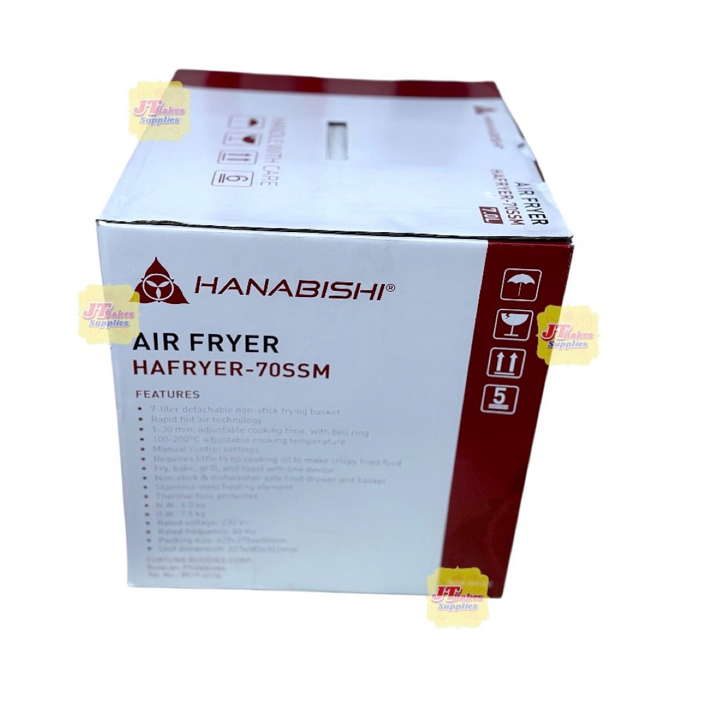 Hanabishi?e'Manual!N)Black/Stainless Air Fryer HAFRYER-70SSM 7 Liters/eP$with/Ek^Freebie
