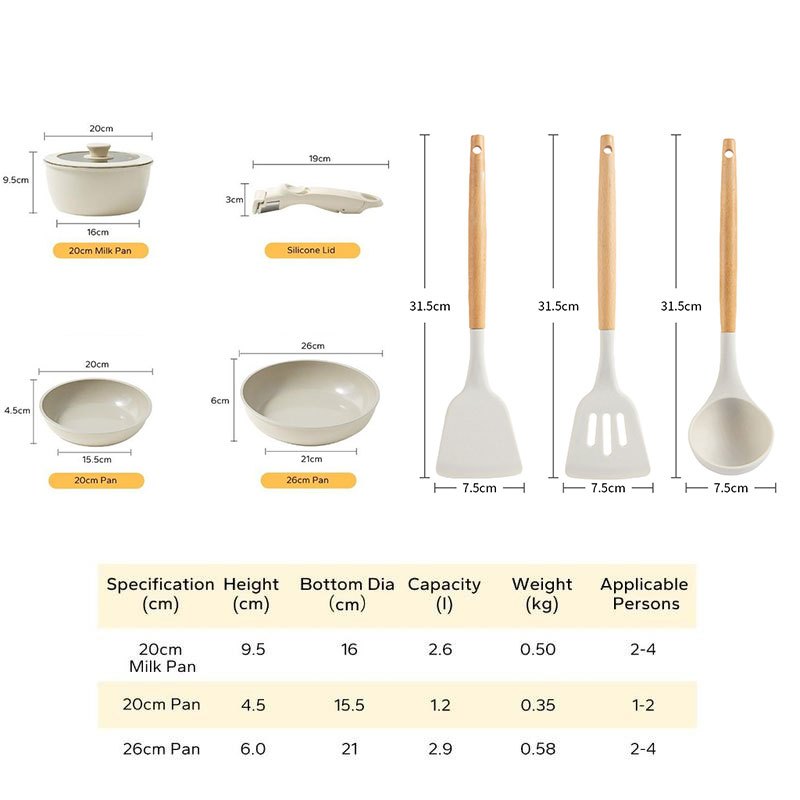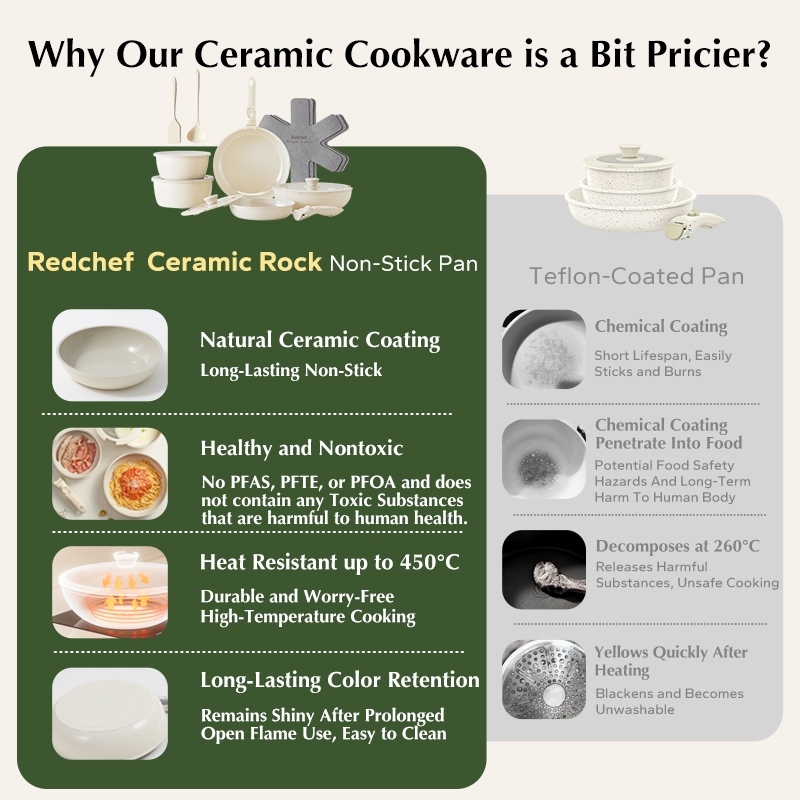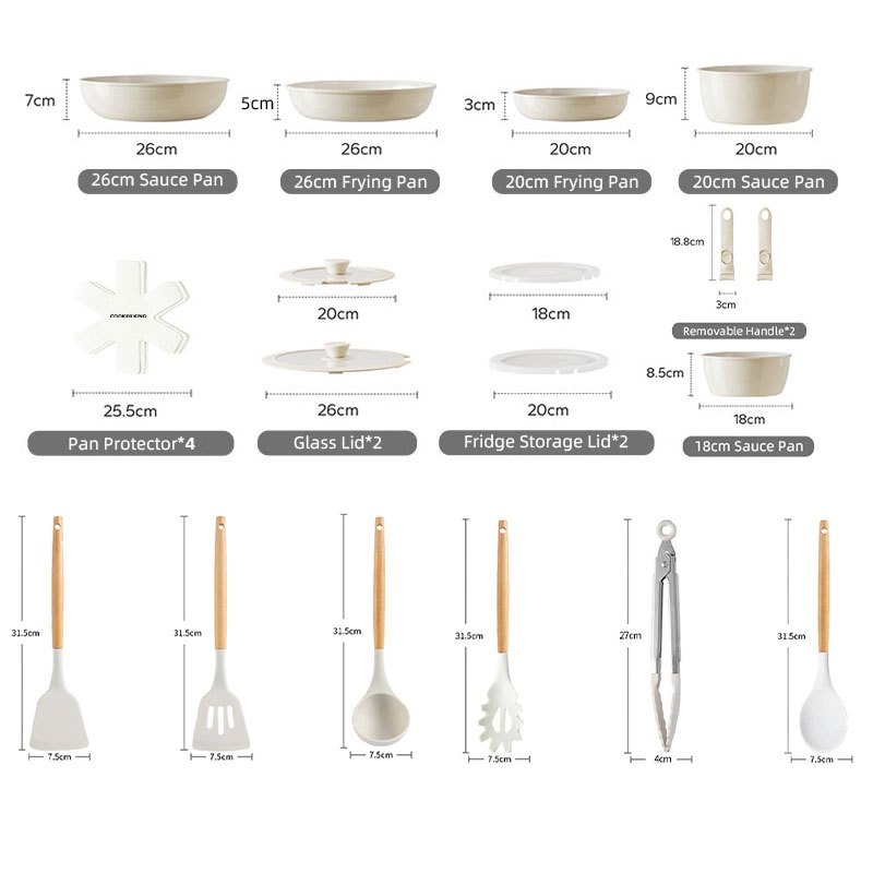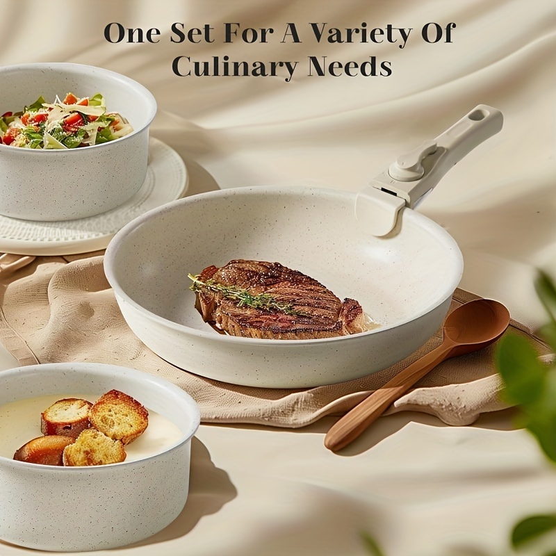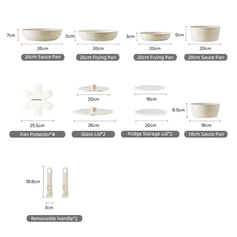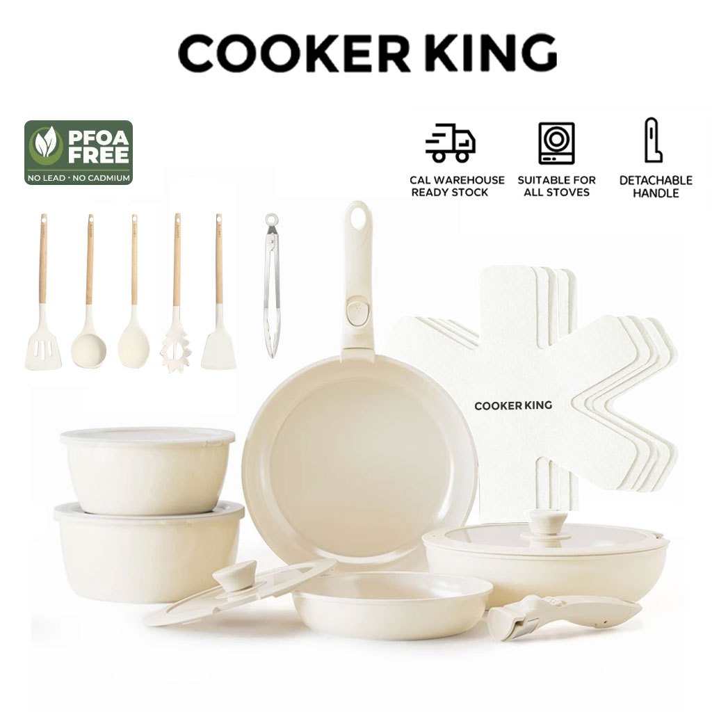 COOKER KING Nonstick Ceramic Rock Cookware Set Handle Detachable Kitchen Frying Pan NO PFOA Suitable All Stoves