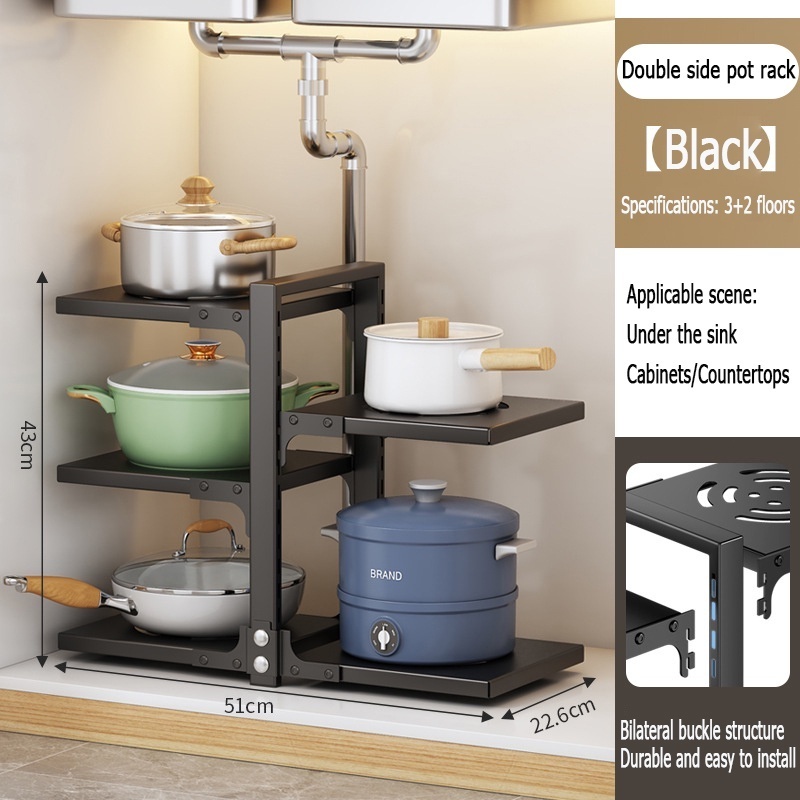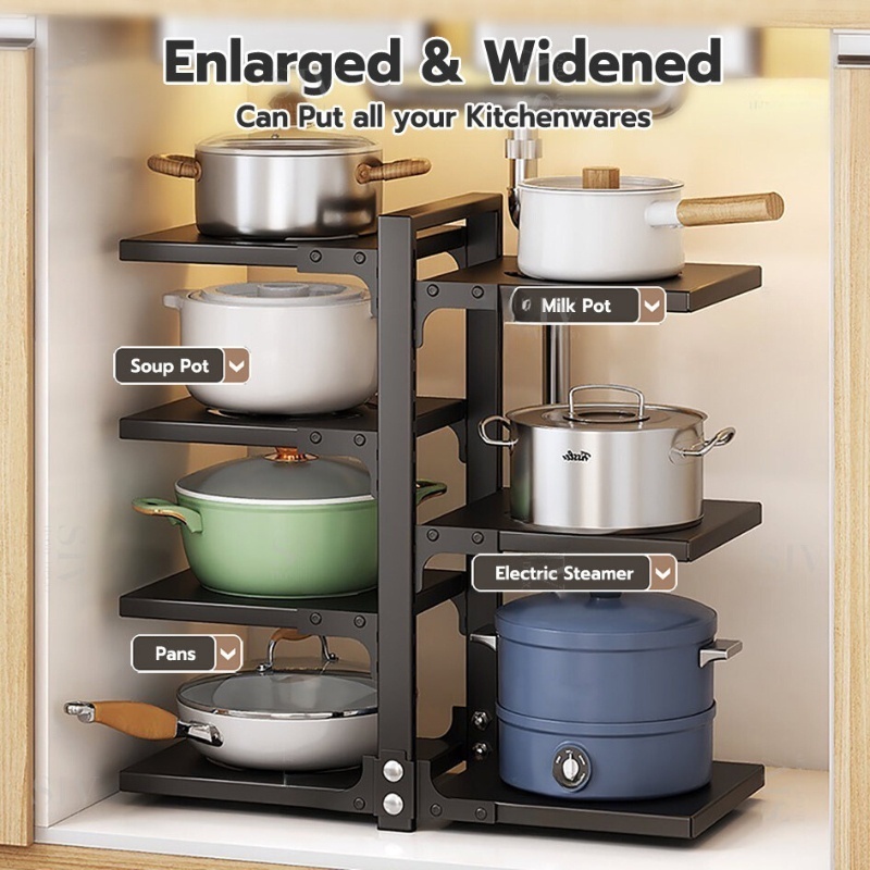Kitchen Pan Organizer rack 2-7 layer Pot Rack Countertop stainless kitchenware storage Adjustable