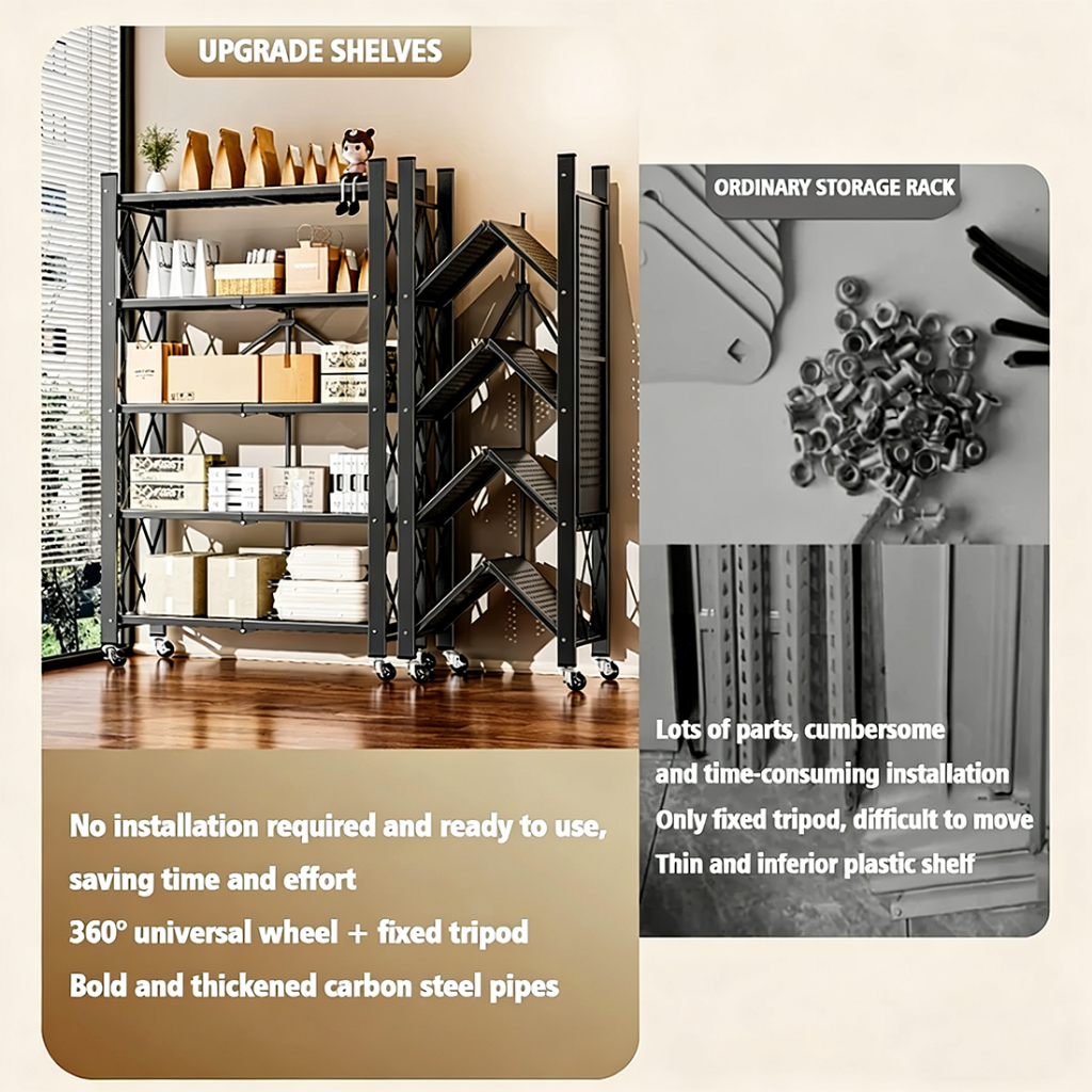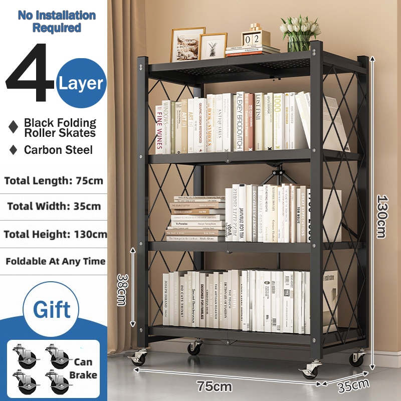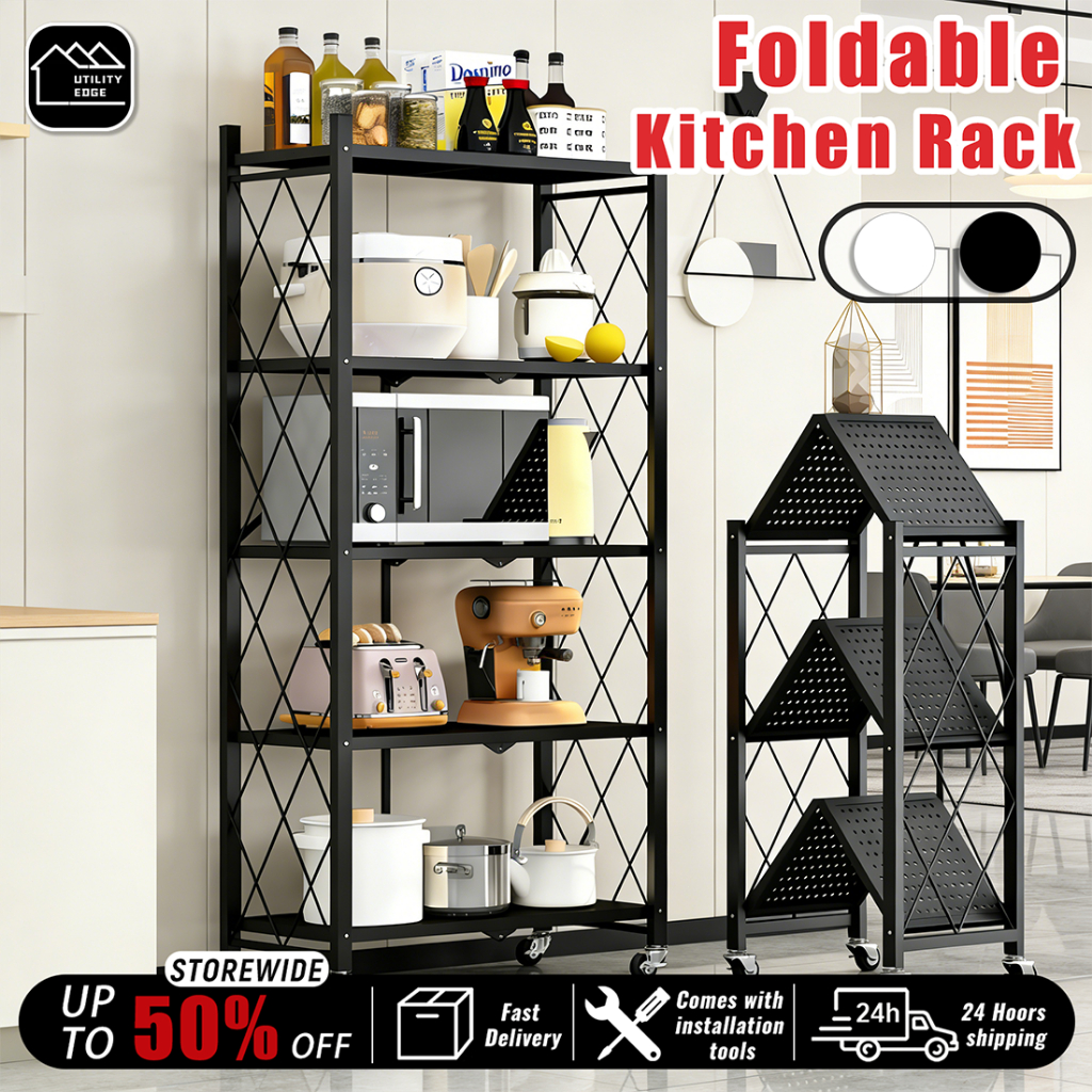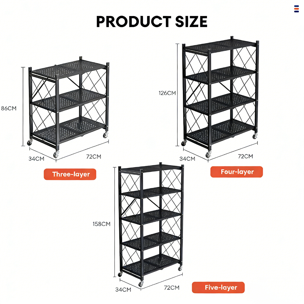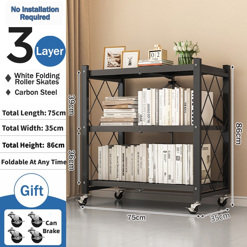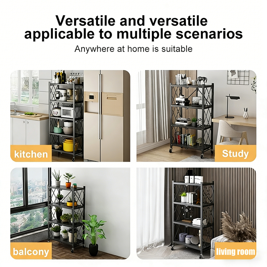 ⚡𝐈𝐧 𝐬𝐭𝐨𝐜𝐤⚡Foldable kitchen storage rack with Wheels multifunctional Metal Heavy Duty Rack 3-5 Layers