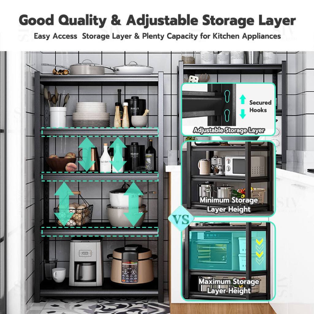 Kitchen Rack Metal Rack Organizer Layer Steel Rack Shelves Heavy Duty Boltless Rack Storage Rack