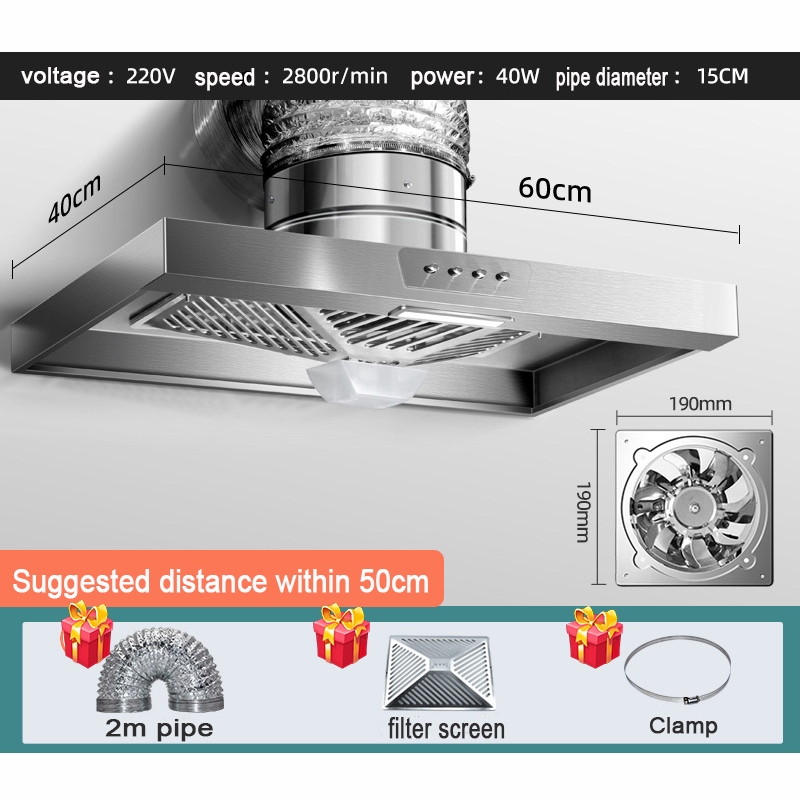 Kitchen Range Hood Wall-Mounted Inverter Exhaust Fan 6 inch Large Suction Range Hood For Kitchen