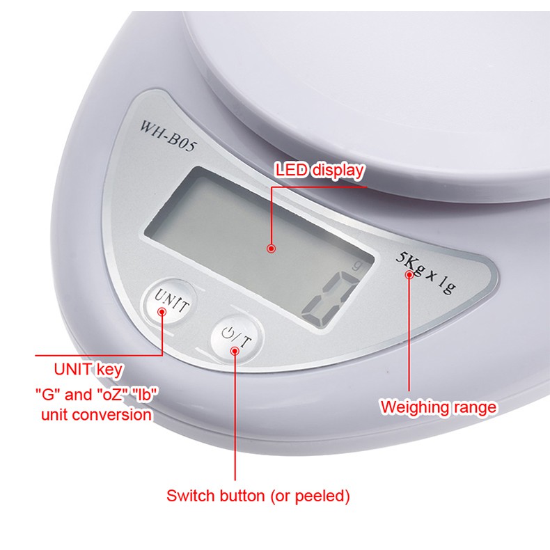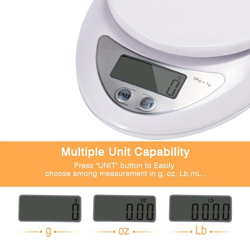 Kitchen Scale With Tray Food Scale Digital Weighing Scale Kitchen LED Food Weighing Scale 5Kg/1g