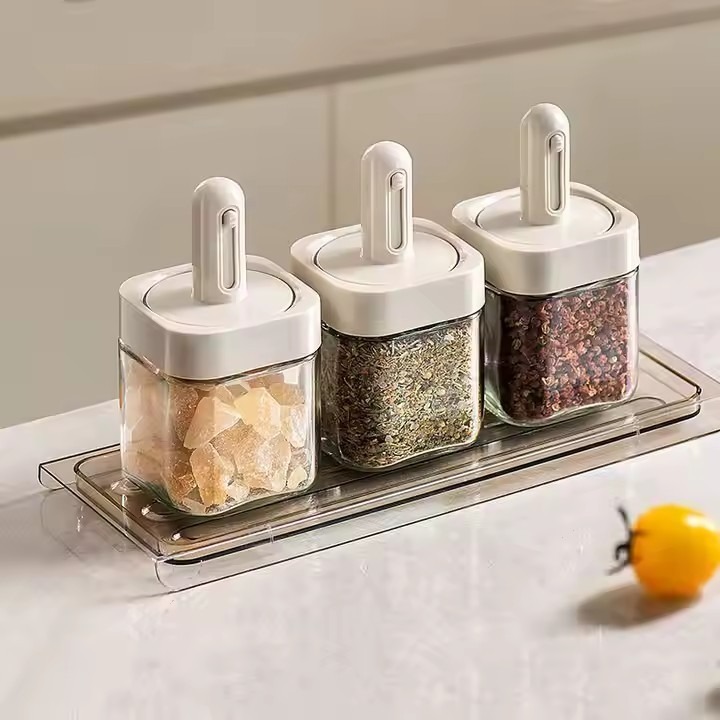 Kitchen Seasoning Container Spice Salt/MSG Seasoning Bottle Container Organizer Scalable Spoon