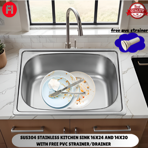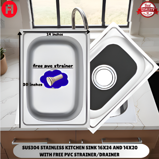 CXC304 STAINLESS KITCHEN SINK (Lababo) 16x24 & 14x20 INCHES PER 1 PIECE with free plastic strainer