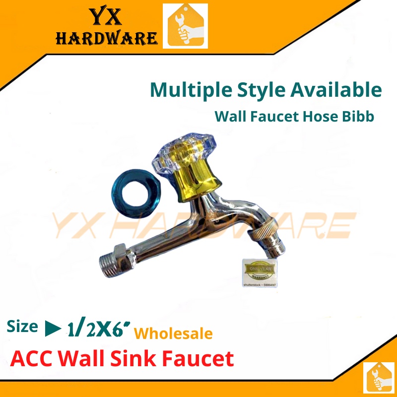 Kitchen Sink Long Faucet Wall Mount 1/2x6" Single Cold Stainless Faucet W Hose Bibb