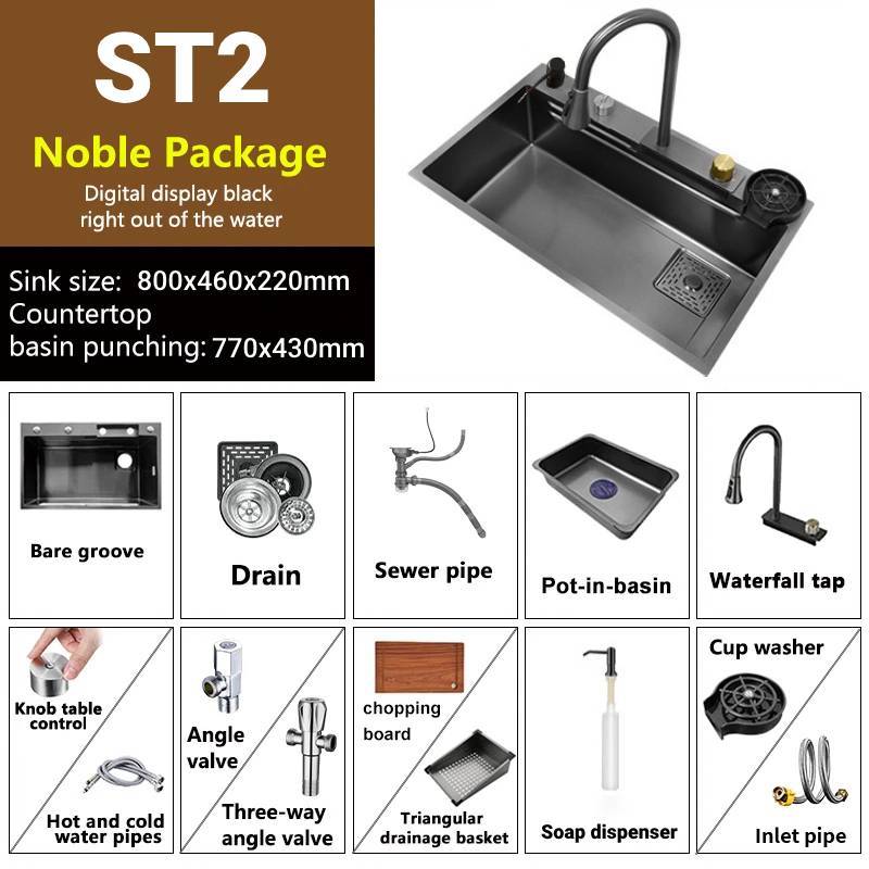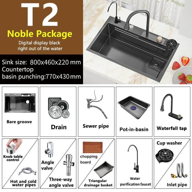 Kitchen Sink SUS304 Stainless Steel Black Sink 4mm With Waterfall Pull-out Faucet Sink Home Sink
