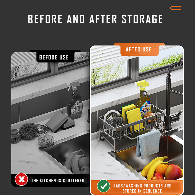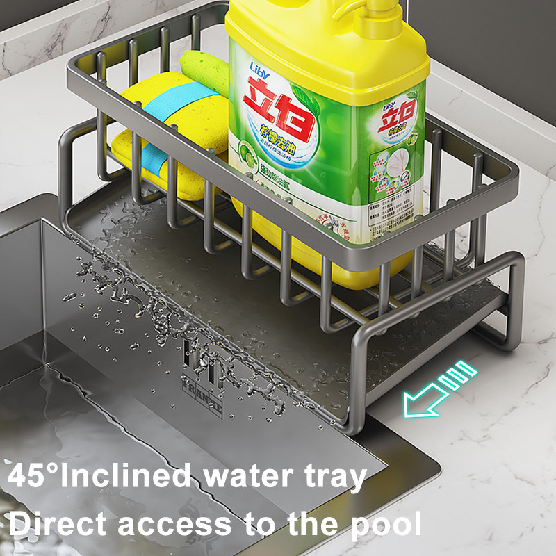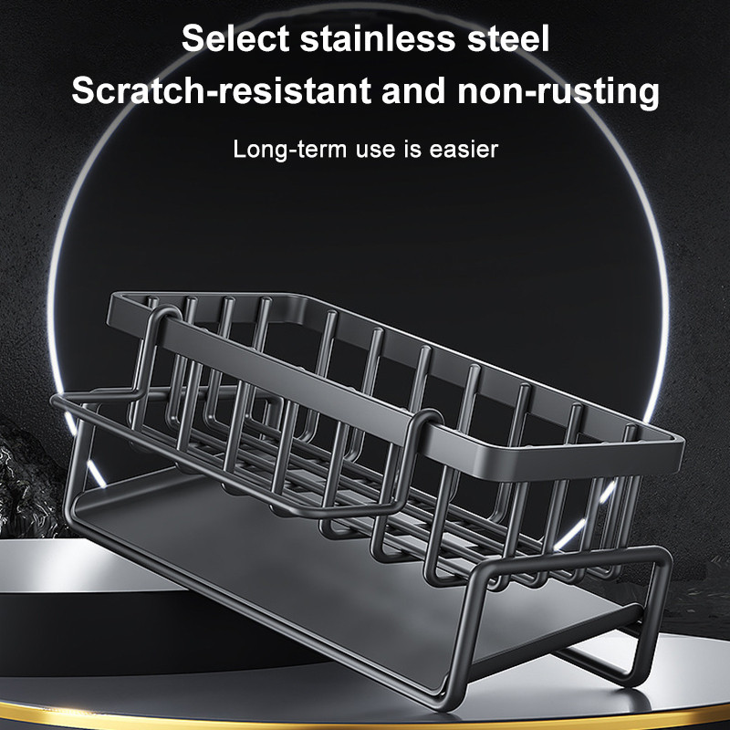 Kitchen Sponge Rack with Drain Stainless Steel Sink Sorting Rack Kitchen Shelf