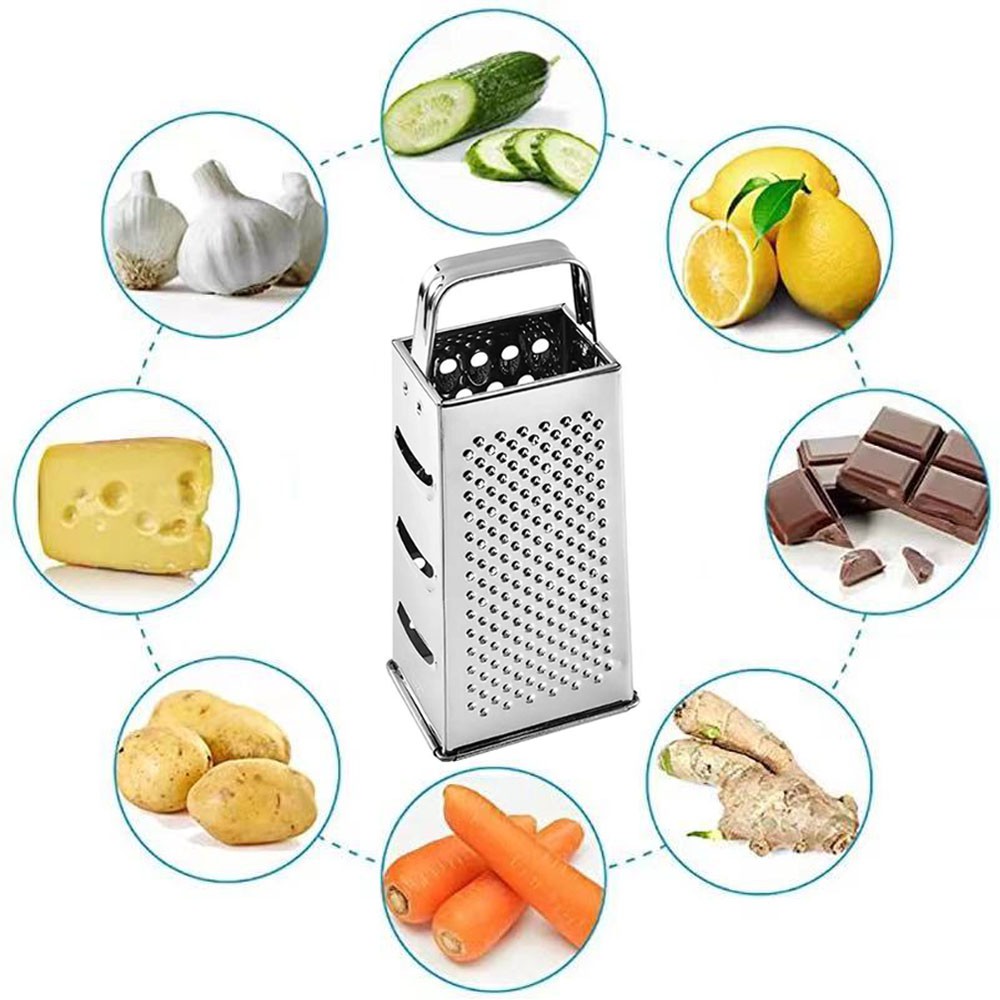 Kitchen Stainless Steel 4-Sided Food Grater Vegetable Cheese Shredder