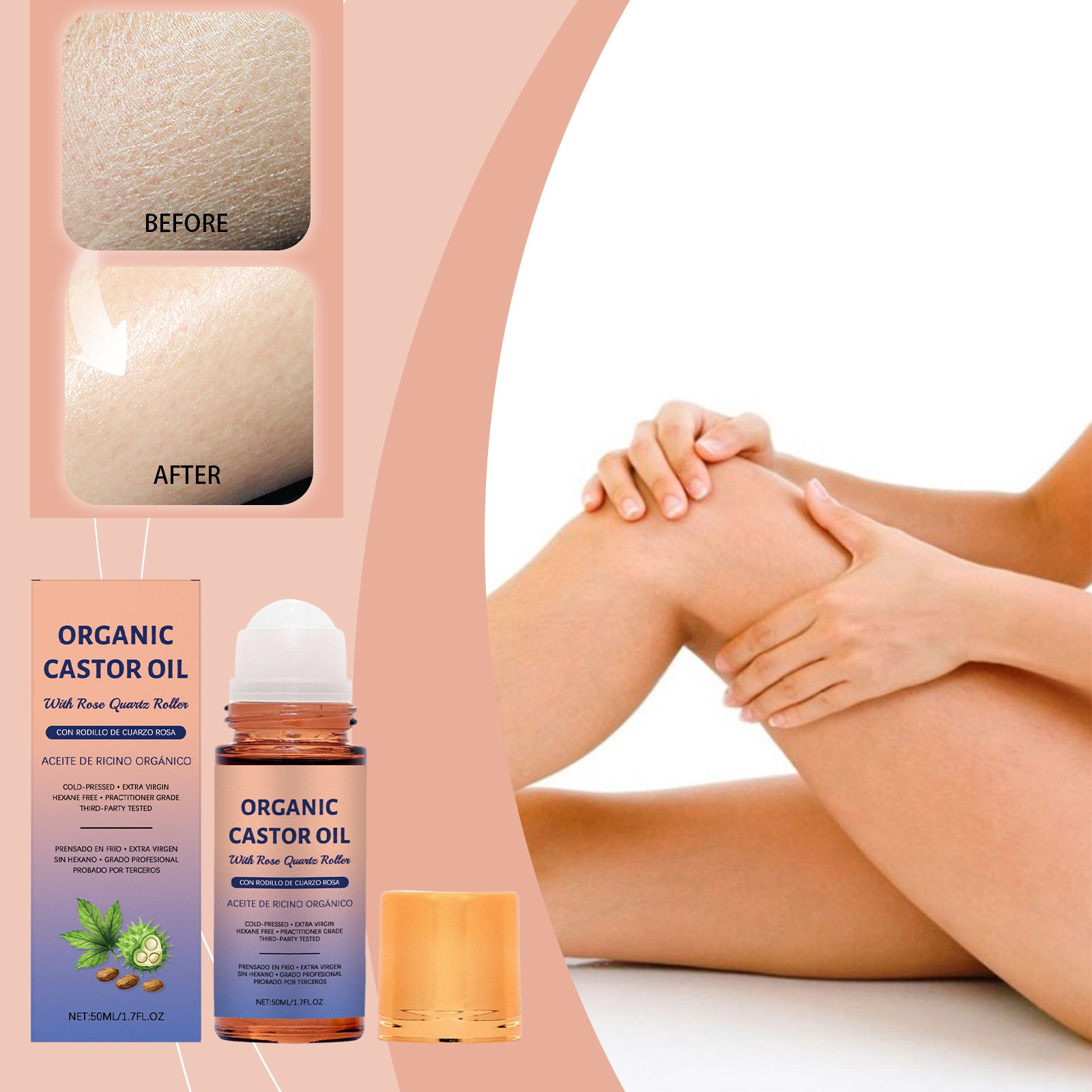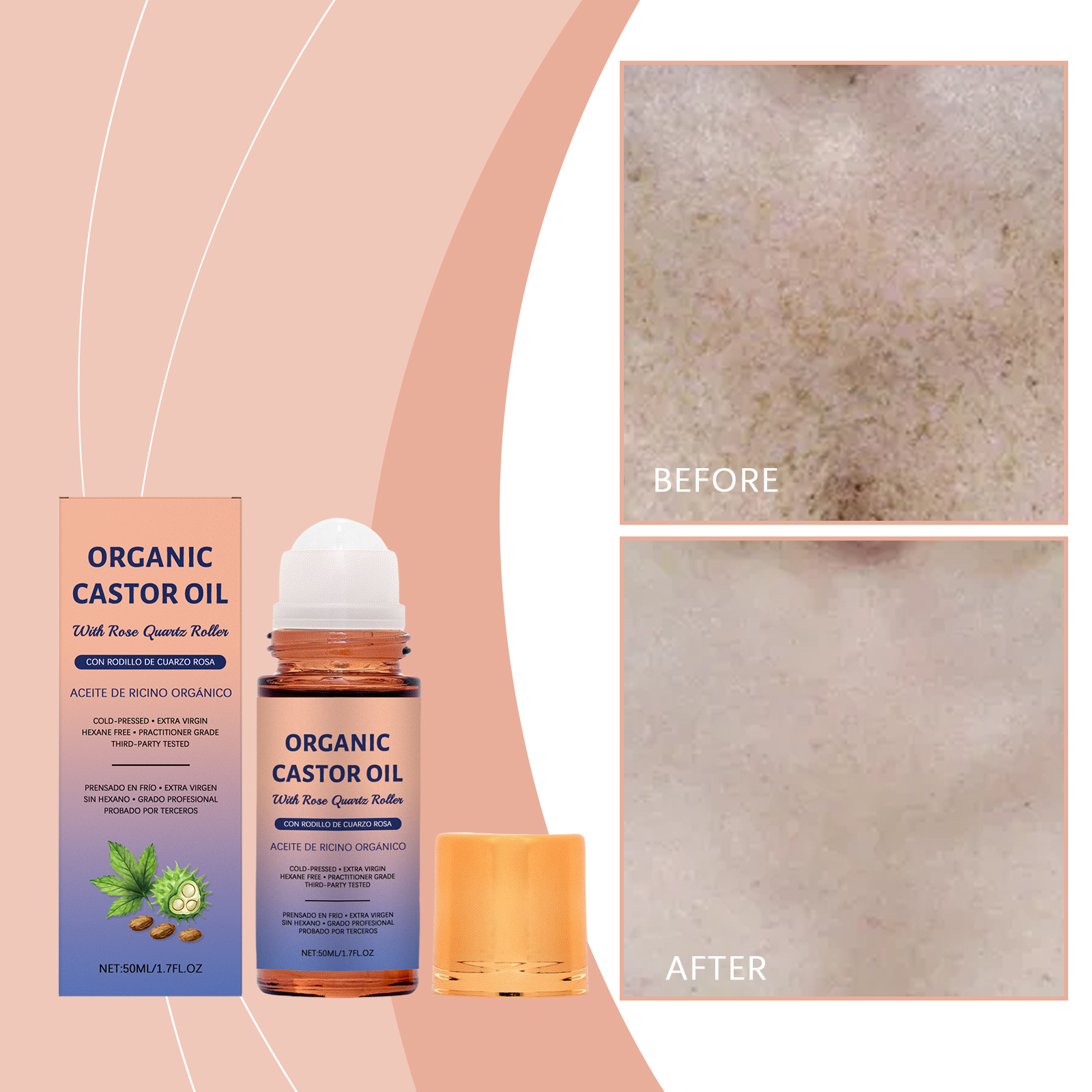 Organic Castor Oil Roll-On with Rose Quartz Roller | Skin Barrier Repair | Moisturizing Soothing | Portable Natural Oil