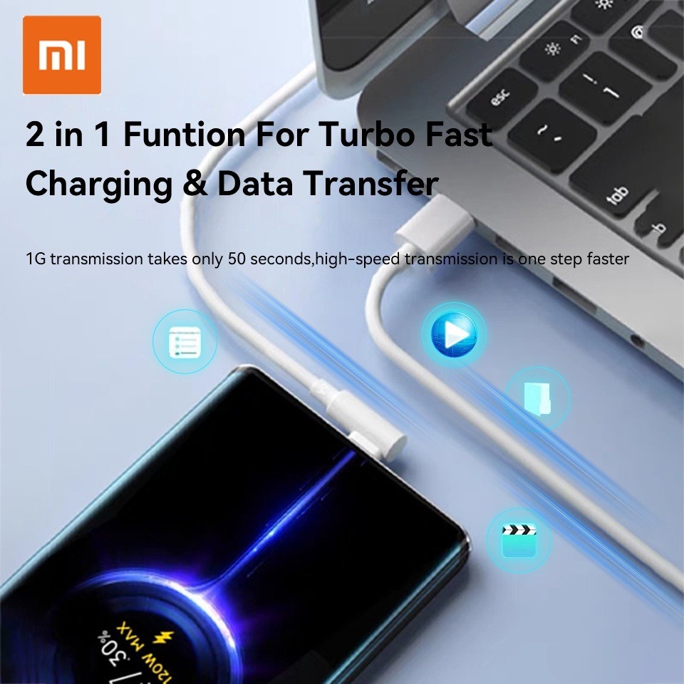 67W 120W Xiaomi Turbo Cable Type C 6A Super Fast Charge Right Angle Usb Cable Fast Charger
