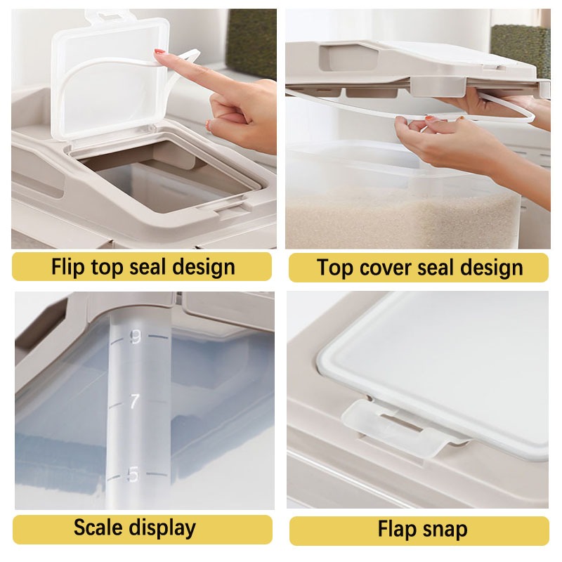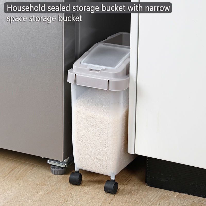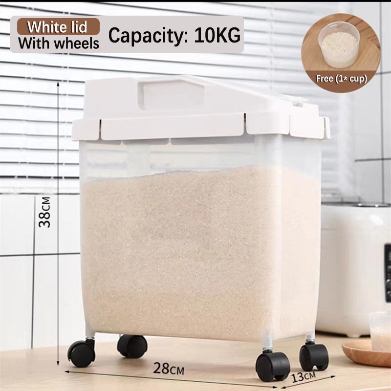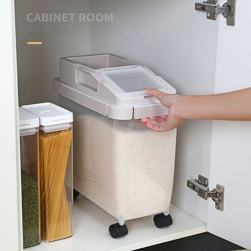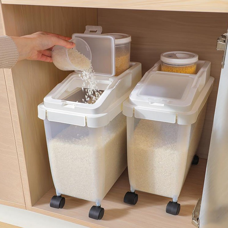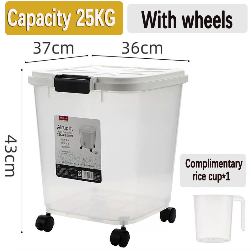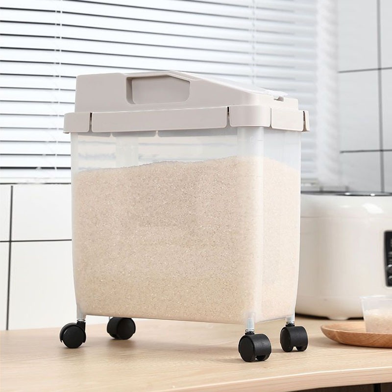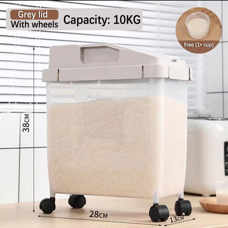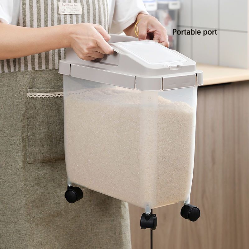 Kitchen transparent rice bucket large capacity 25/15/10kg rice storage container with wheels