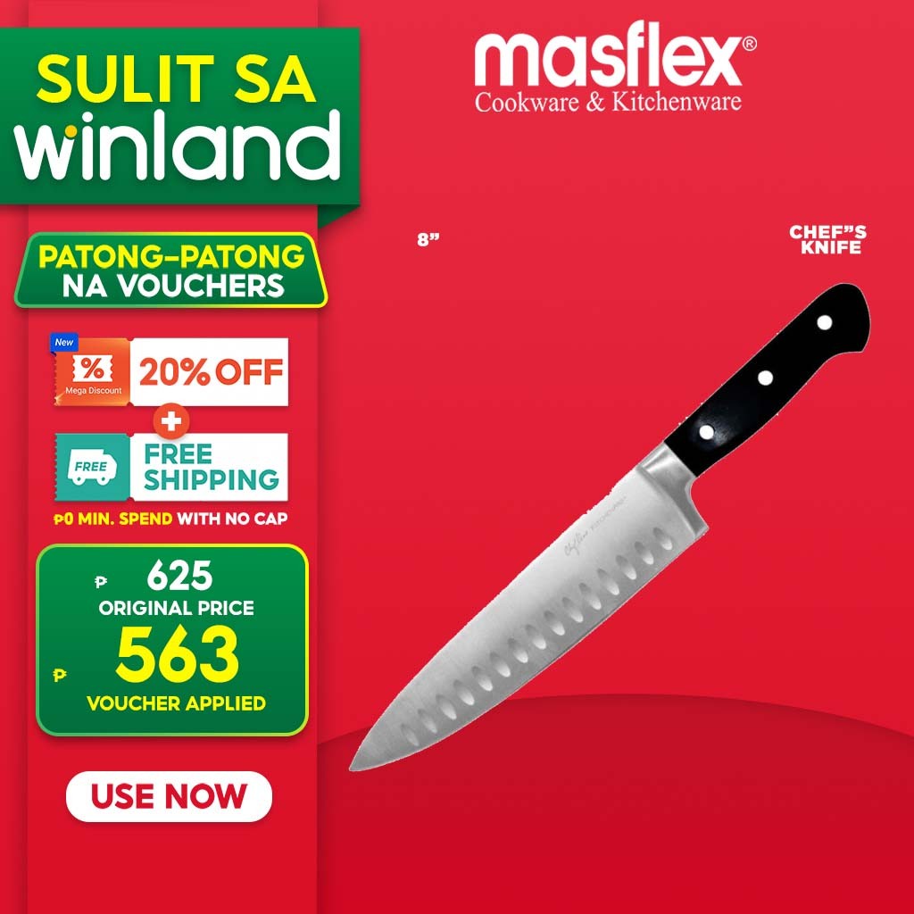 Kitchenpro by Masflex 8" Stainless Steel Chef's Knife with Recessed Kullens KP-CK