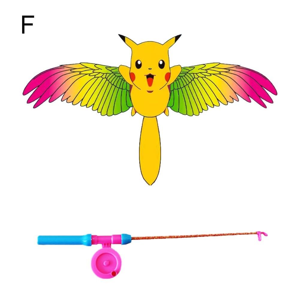 Kite With Fishing Rod Dynamic Cartoon Bird Butterfly Handheld Fishing Rod Kite With Handle Eagle Children Flying Kite Toy
