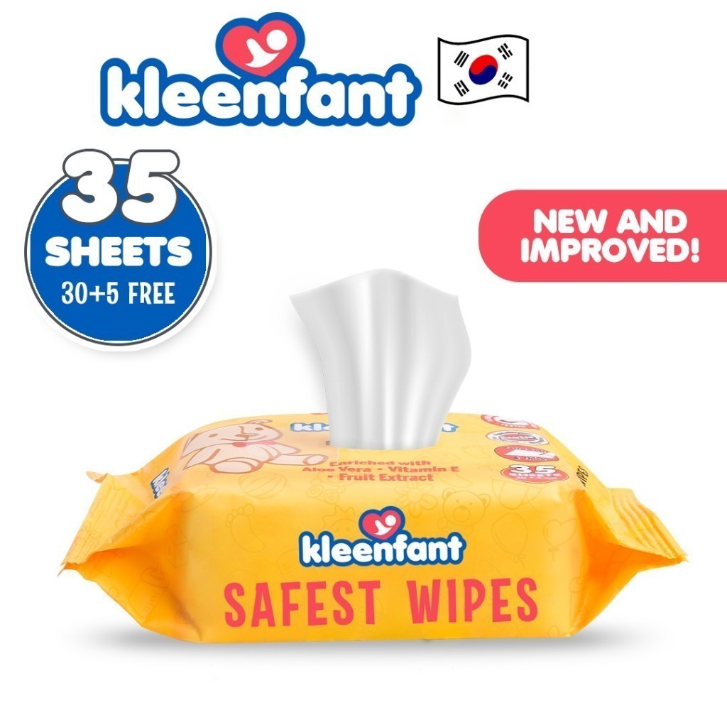 Kleenfant Baby Wipes Powder Scent 35 Sheets 1 pack Newborn Wet Wipes for Baby Needs with Aloe Vera
