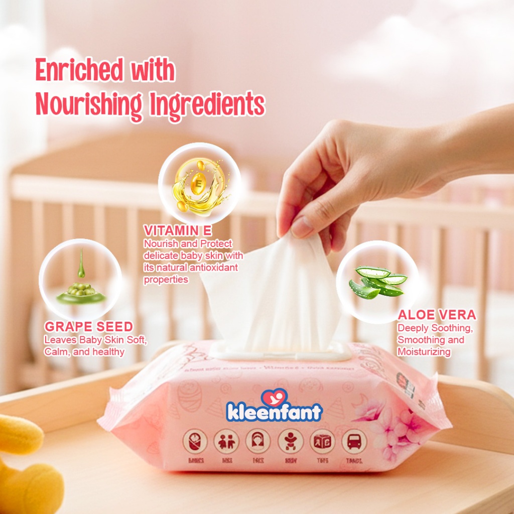 Kleenfant Cherry Blossom Baby Wipes for face 95 Sheets 1 pack Make Up Remover Skin care