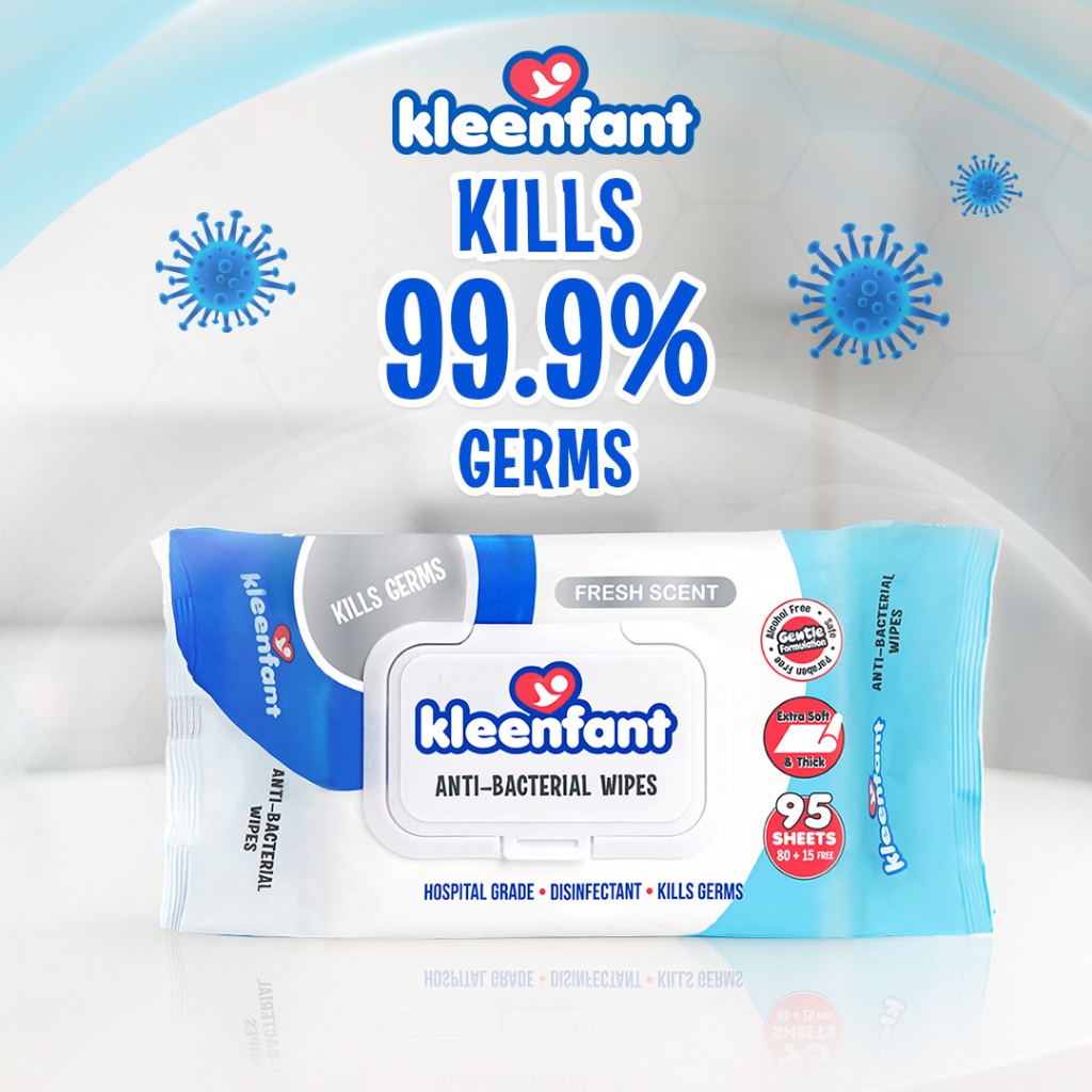Kleenfant Fresh Scent Antibacterial Wet Wipes Disinfectant Cleansing 95 Sheets 1 pack Alcohol Free