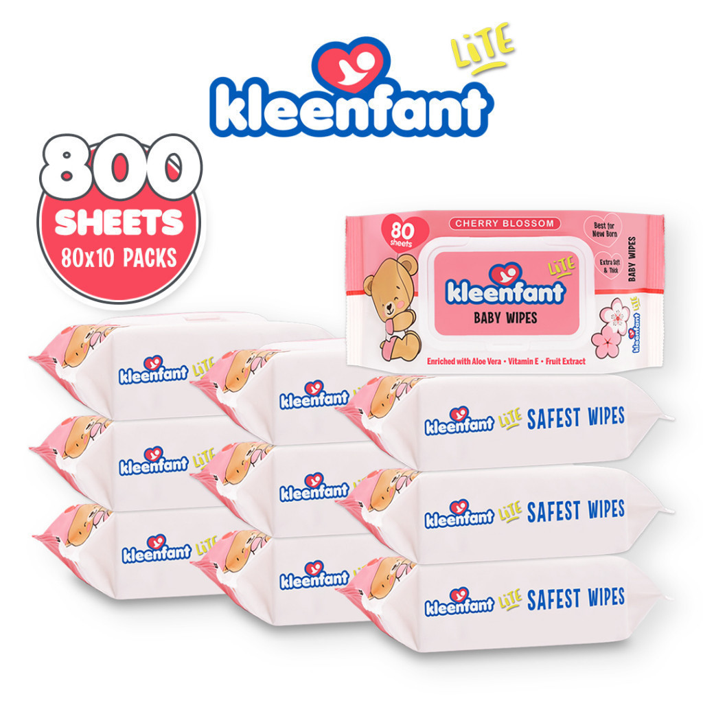 Kleenfant Lite Cherry Blossom Baby Wipes 80 Tender sheets 10 Packs Wet Wipes for Baby Newborn Kids
