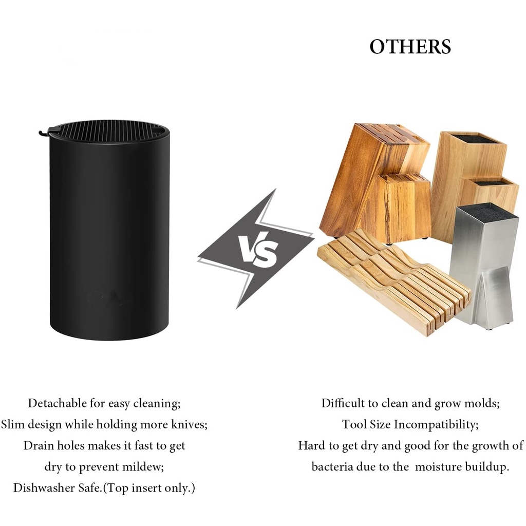 Knife Block Holder, Universal Knife Block without Knives, Round Black Knife Holder for Kitchen Space