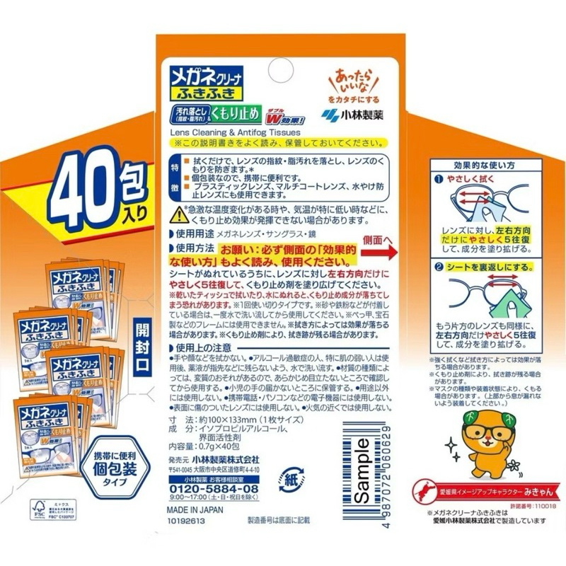 Kobayashi Glasses Cleaner Wipes Anti-Fog 20 and 40 Packets Eye Glass Cleaner Original from Japan