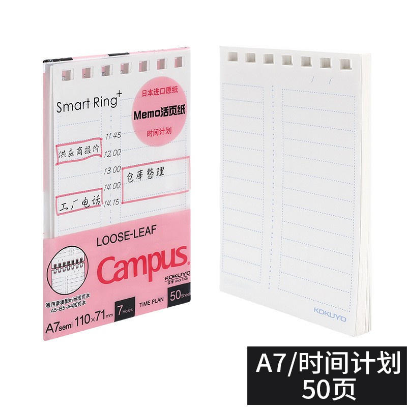 Kokuyo A7 New 2 Hole Mini Loose Leaf Notebook Flip Book Time Plan To Do List