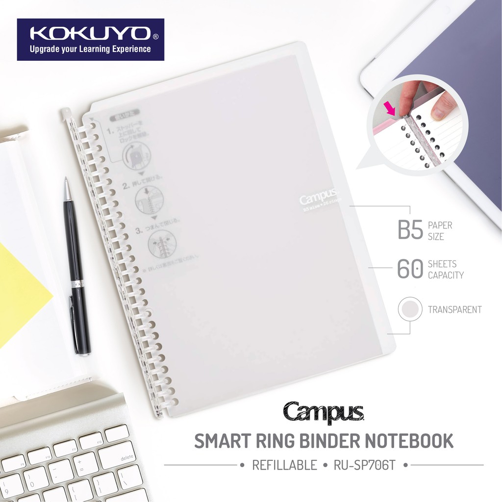Kokuyo Campus Smart Ring Binder Notebook B5 (Refillable) (Capacity 60 sheets)
