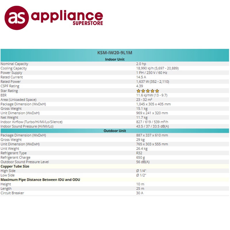 Kolin 2HP Aptus Series Inverter with Wifi Split Type Aircon KSM-IW20-9L1M