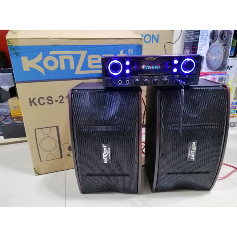Konzert Kcs-212 todoroke speaker system set 2way speakers bass reflex with Double wireless mic set.