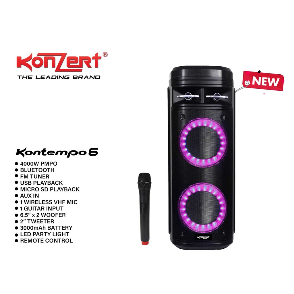 Konzert Kontempo 6 Karaoke Portable Speaker System 4000W PMPO w/ Bluetooth, 1 Wireless Microphone