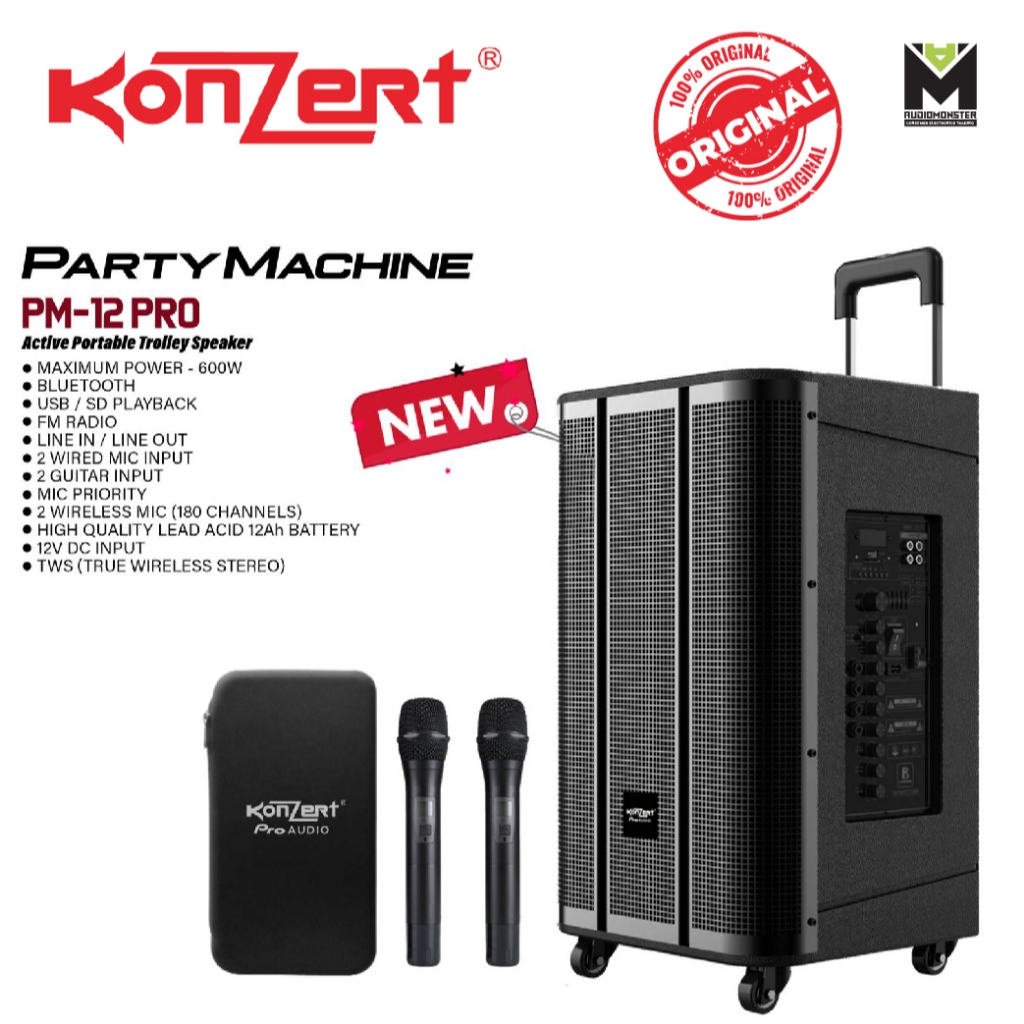 Konzert PM-12 PRO 600W Active Portable Trolley Speaker with Bluetooth, USB/SD Playback and FM Radio