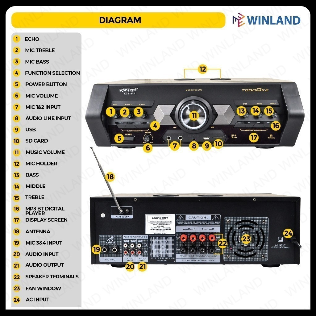 Konzert by Winland Micro Component Todoroke Speaker System with USB/SD & Bluetooth KCS-412 (2)pieces