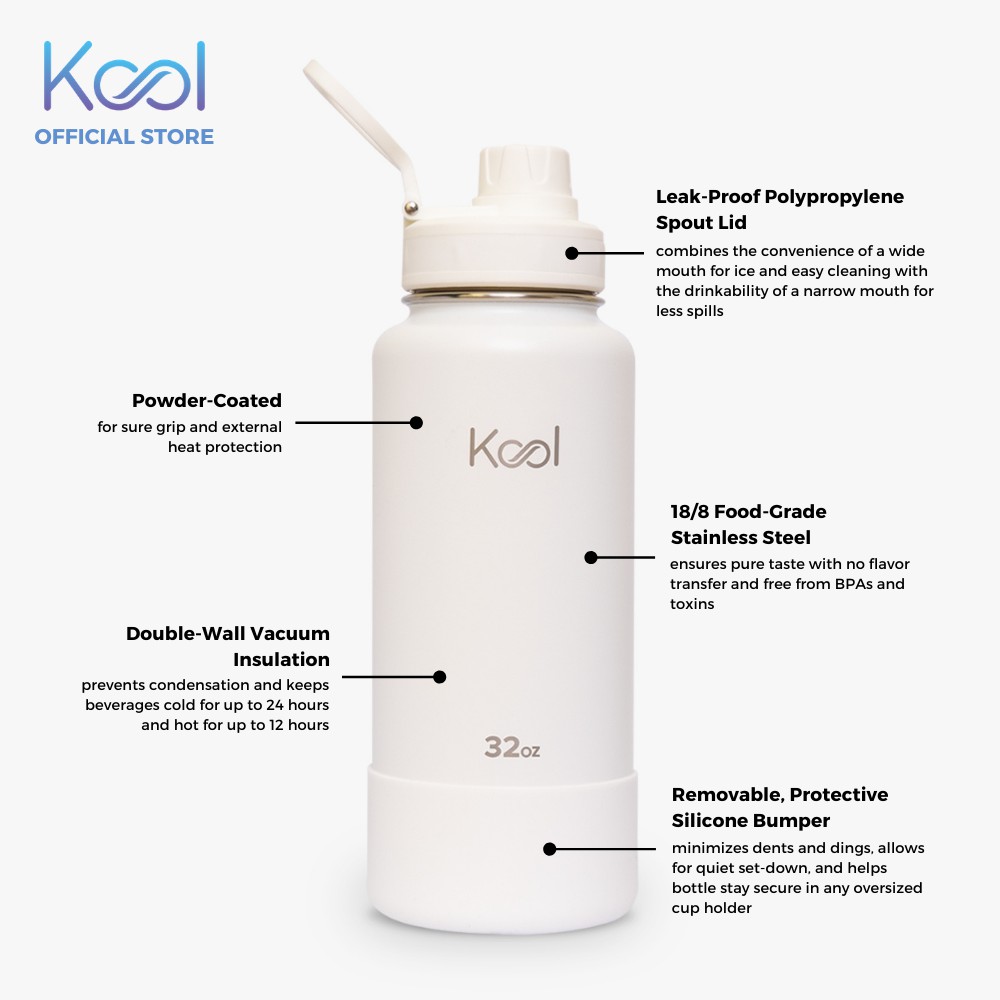 Kool Insulated Stainless Steel Water Bottle With Silicone Boot - Zermatt White - 32oz/946ml