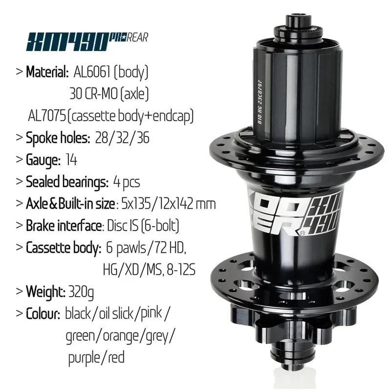 Koozer XM490pro HG Rear hub 28 32 36 Holes MTB Disc Brake Bicycle Hub Quick Release 10x135 Thru Axle 12x142mm