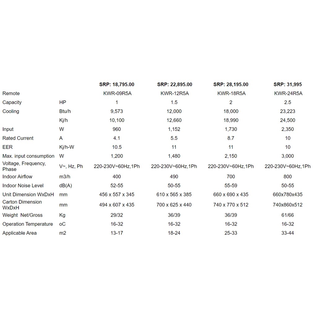 Koppel 1HP Window Type Remote Non-Inverter Aircon KWR- 09R5A