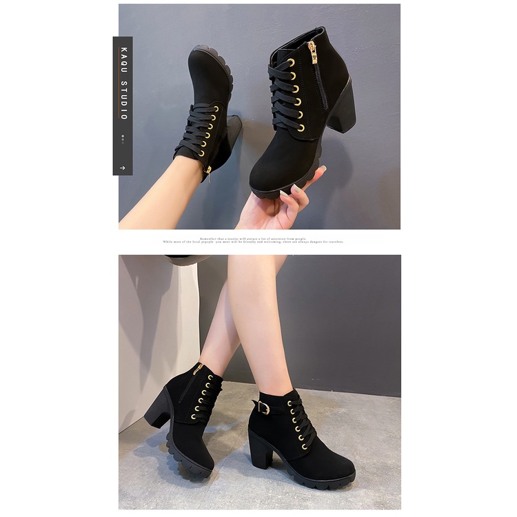 Korea Boots Fashion Ankle Suede Girl High-Heeled Short Boots (add one size) #888