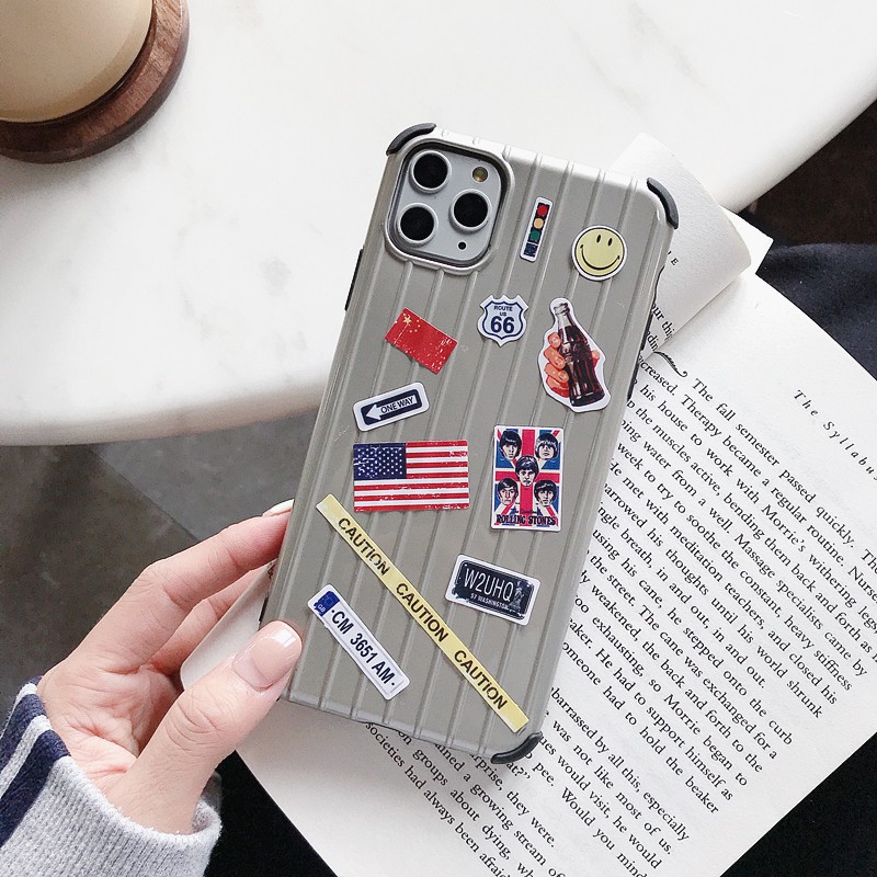 Korea DIY Free Stickers Case iPhone 11 Pro Max X XR XS MAX 6 6S 7 8 Plus Luggage Case Soft Casing