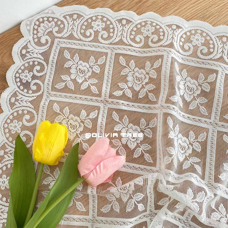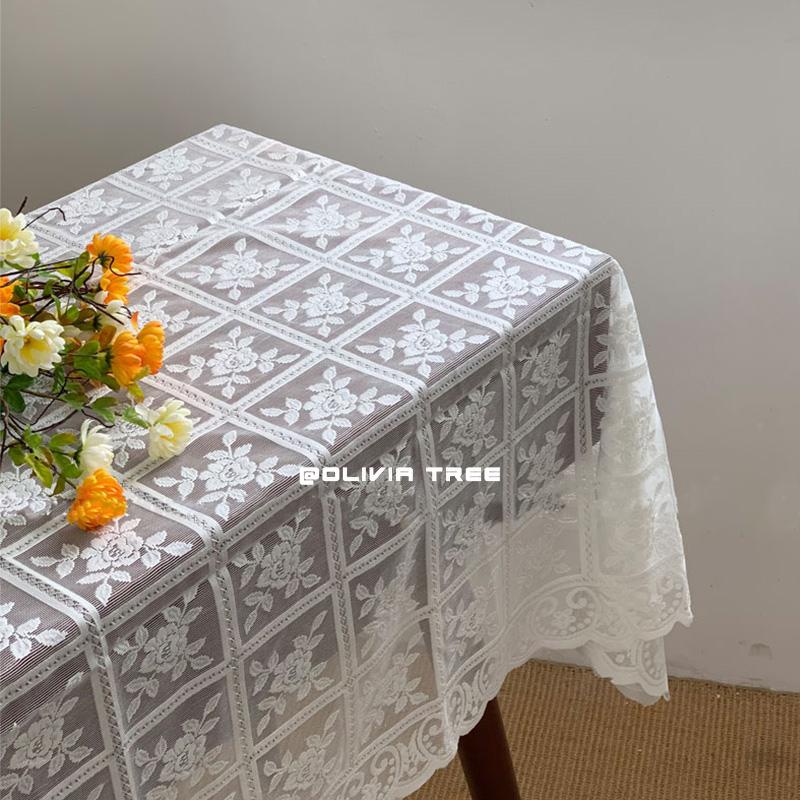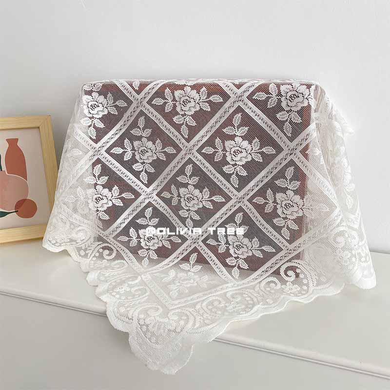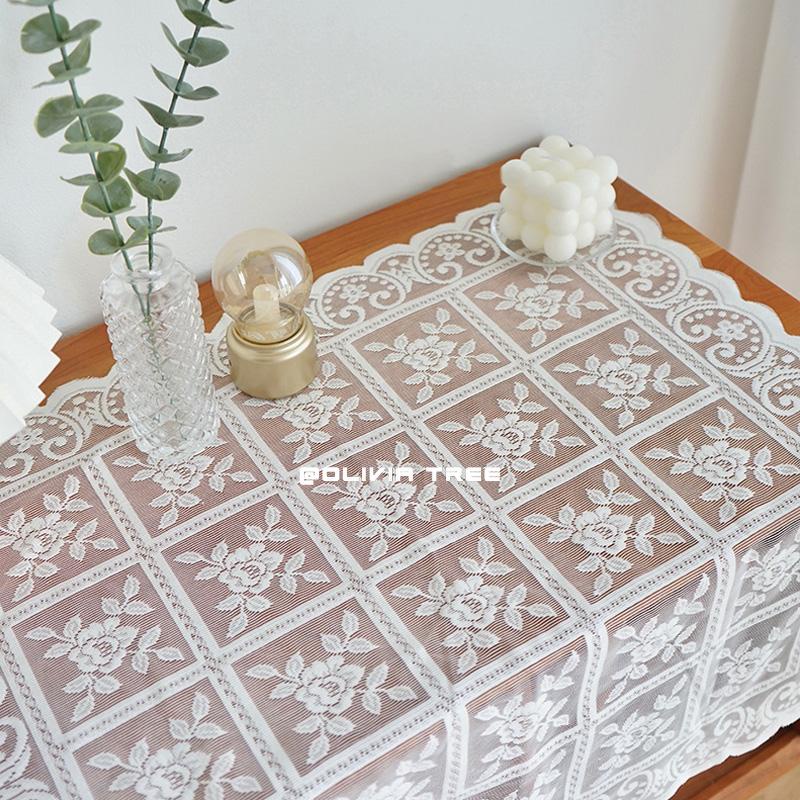 Korea Ins Retro Checkered Rose Lace Tablecloth Coffee Table Bedside Table Cover Cloth Pendulum Background Cloth Vintage Fabric