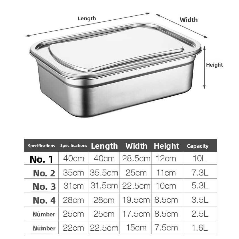 Korea Stainless Steel Food Storage Container Collection in Fridge / Kitchen Rectangle Food Container / 304 Stainless Steel Crisper Rectangle with Lid Sealed Large Capacity Lunch