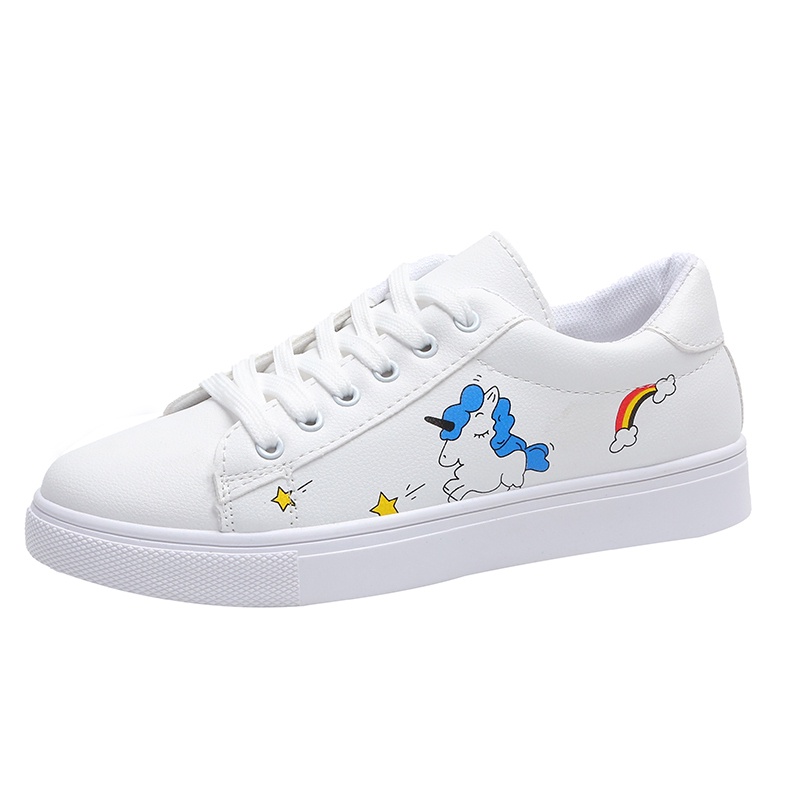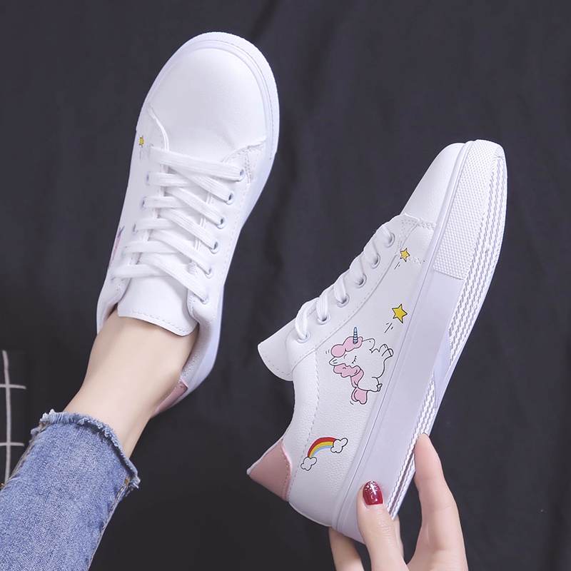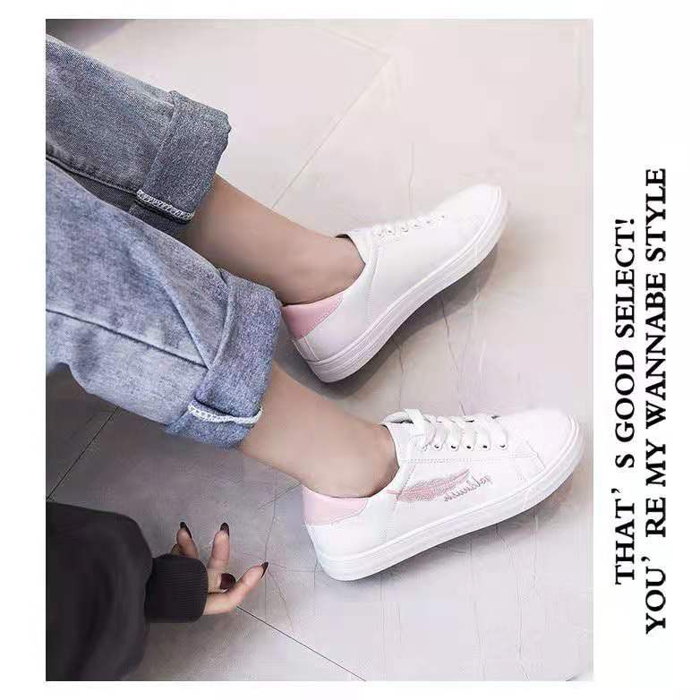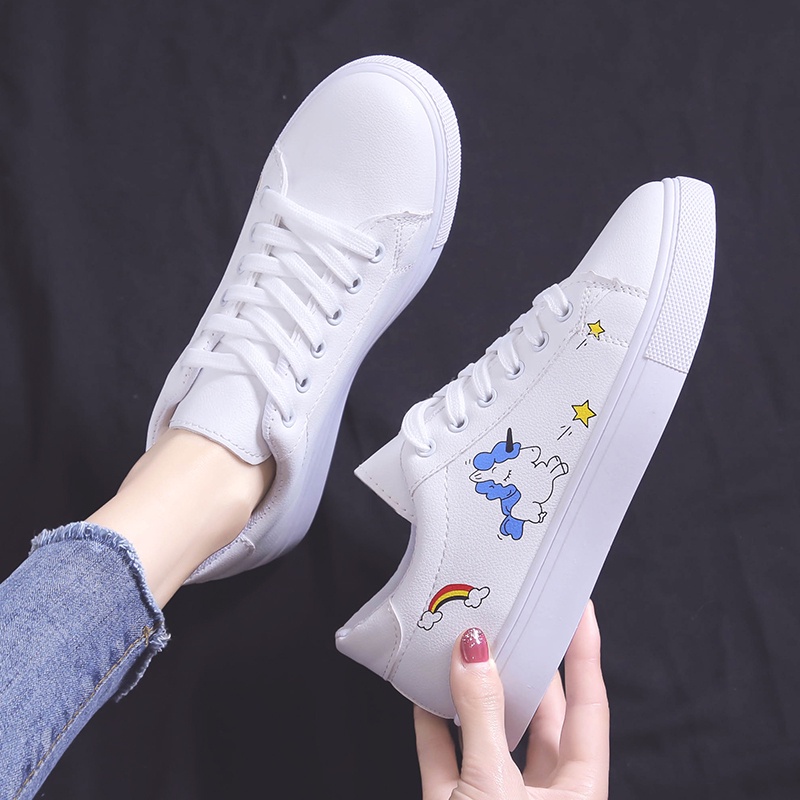 Korea Women Flat WHite SHoes Casual Embroidery Sneakers