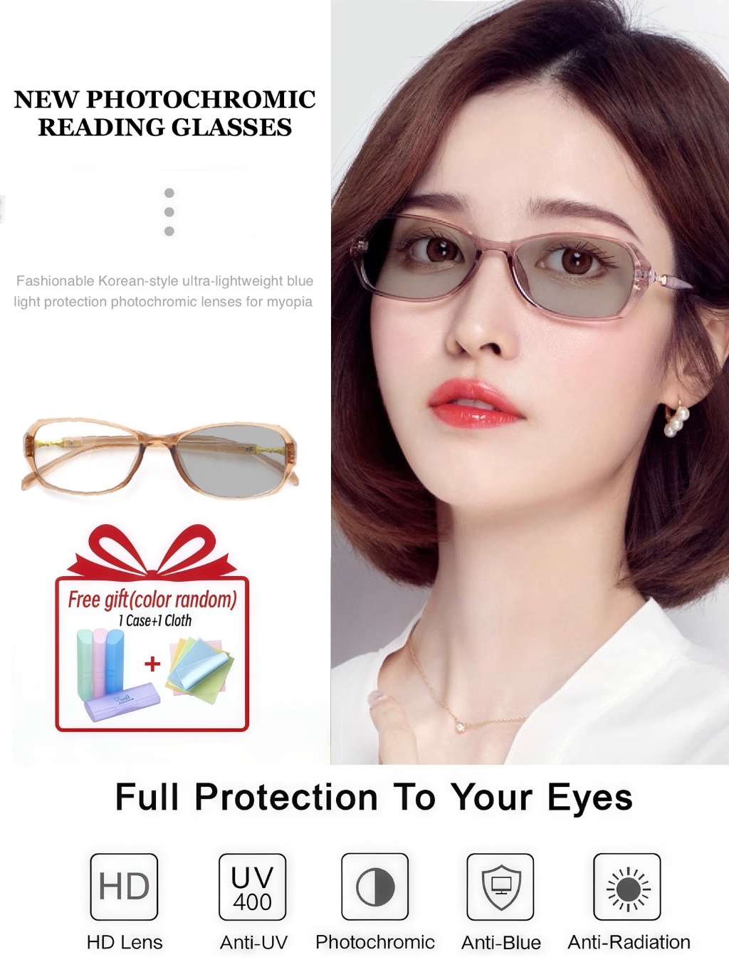 Korean 0-300 Photochromic Glasses For Nearsighted Woman Graded Eyeglasses Replaceable Myopia Eyewear