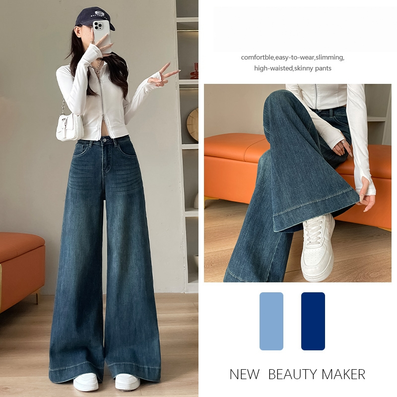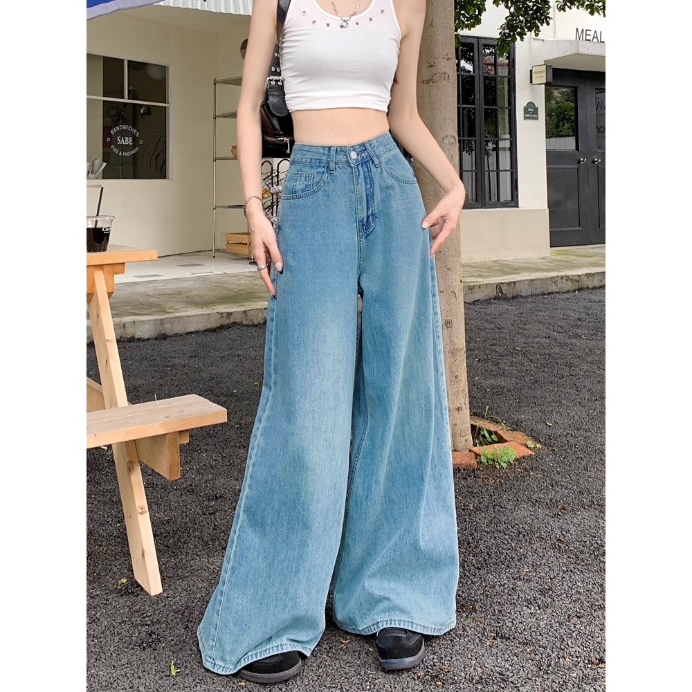 Korean Baggy Loose pants High Waist Ultra Wide Leg for Women Vintage Bee Pop Skittle Relaxed Denim