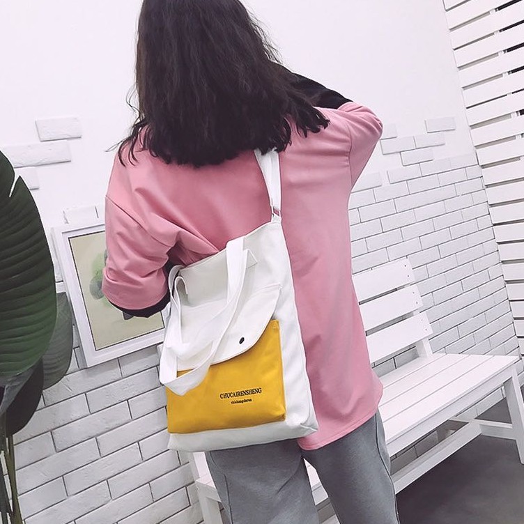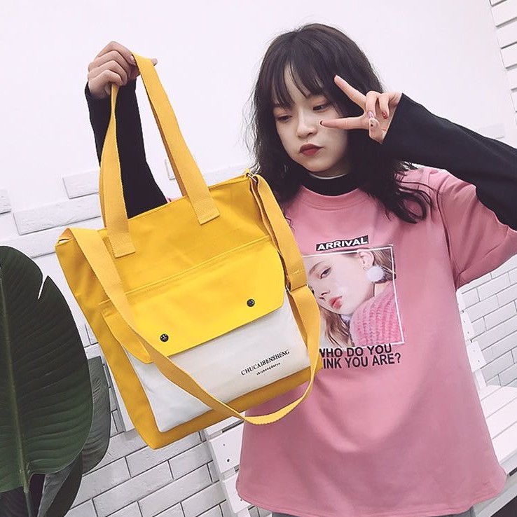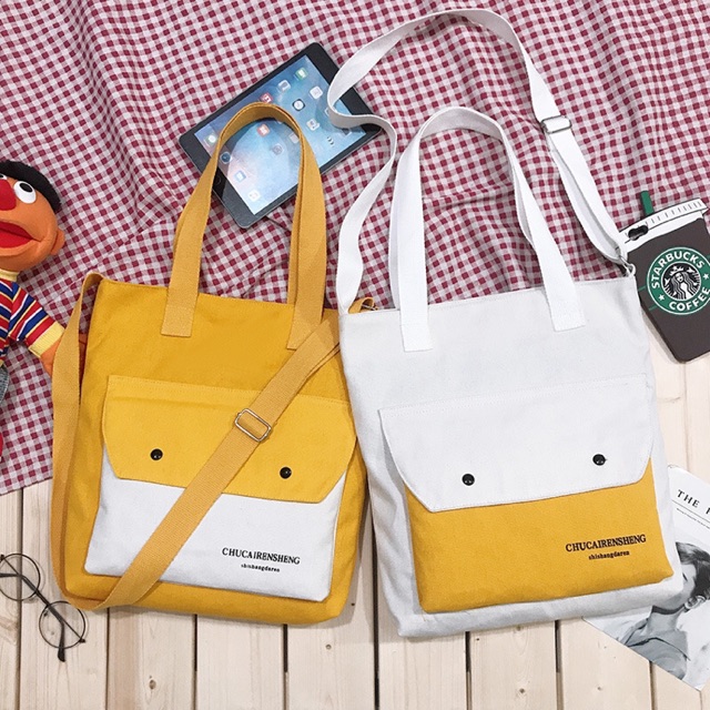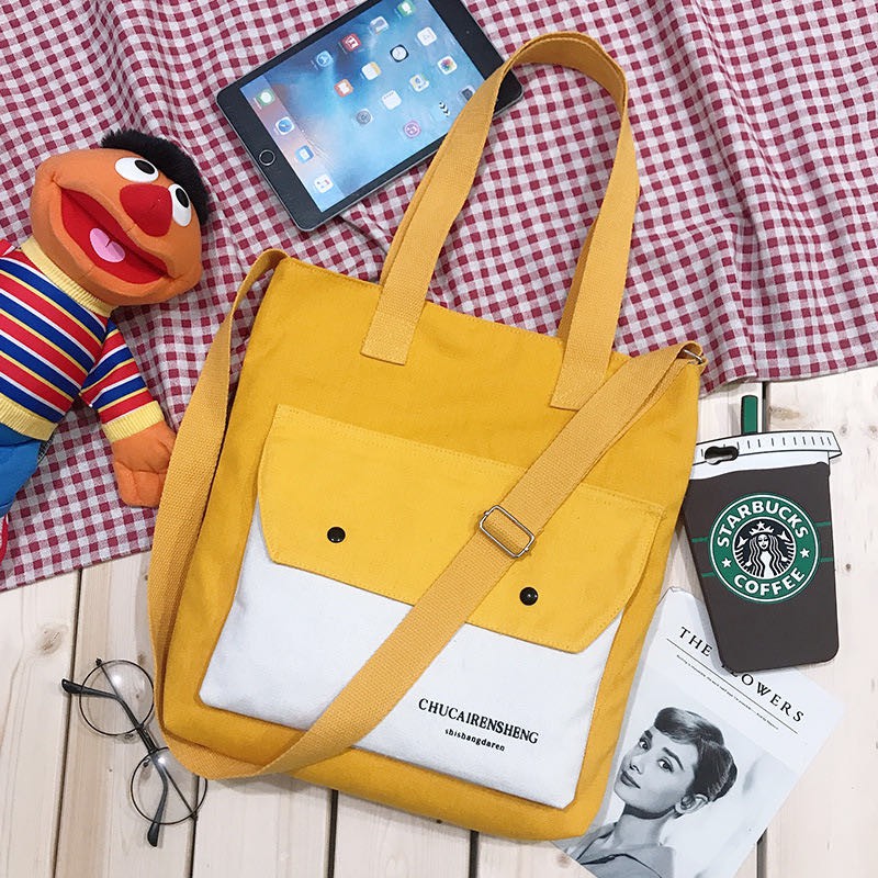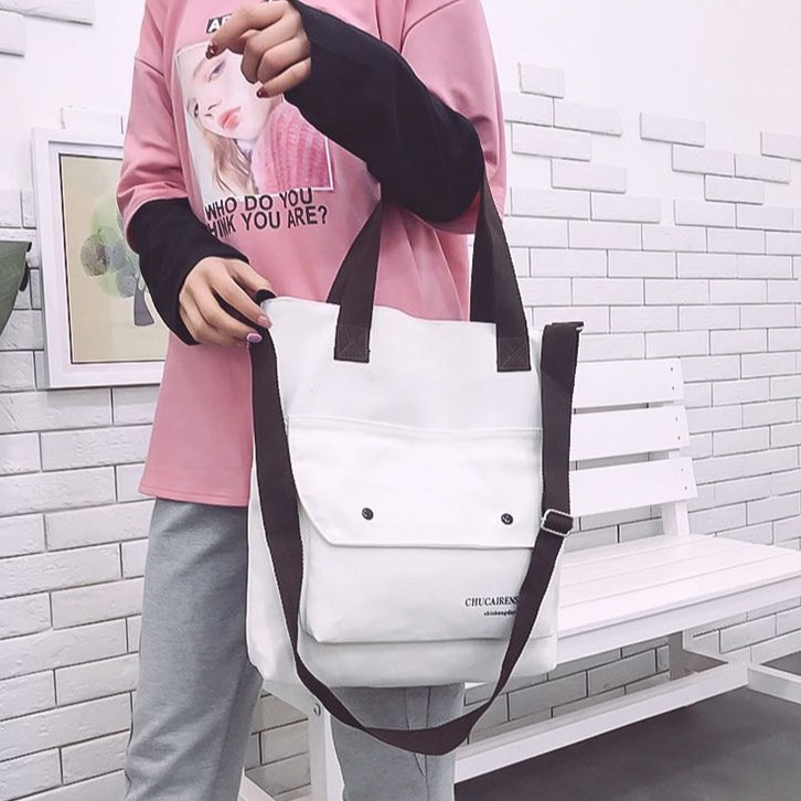 Korean Canvas Bag (Design No.31) Cross Body Shoulder Bag 2 Handle Katsa Tote Bag With Strap Handbag
