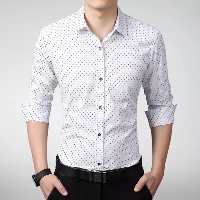 Men's Korean Casual Patterened Long Sleeves Shirt Polo Shirt