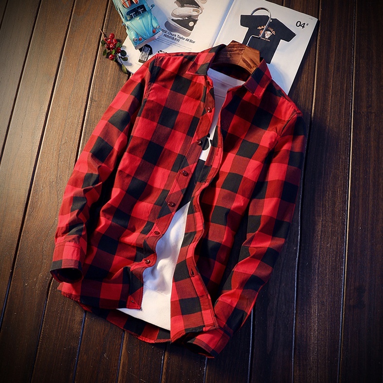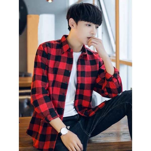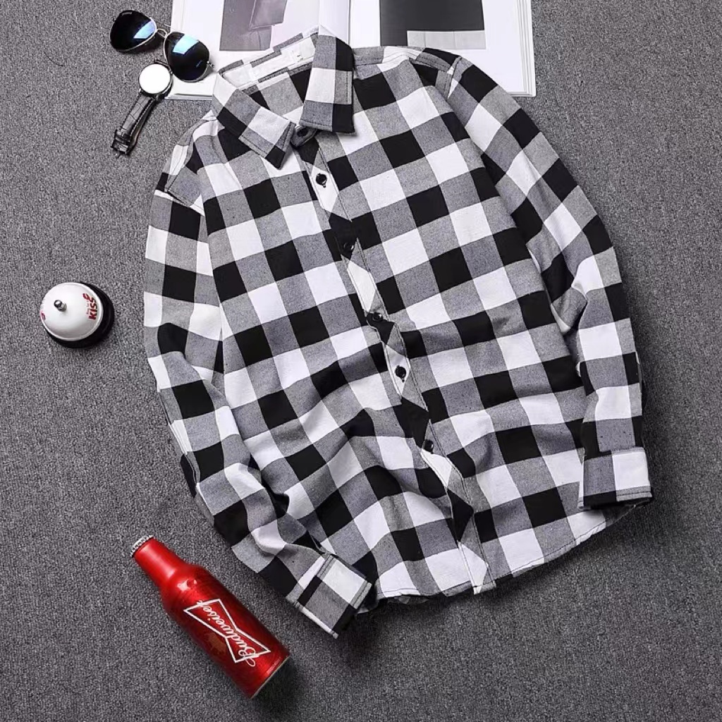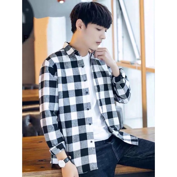 Korean Checked Long Sleeve Polo For Men