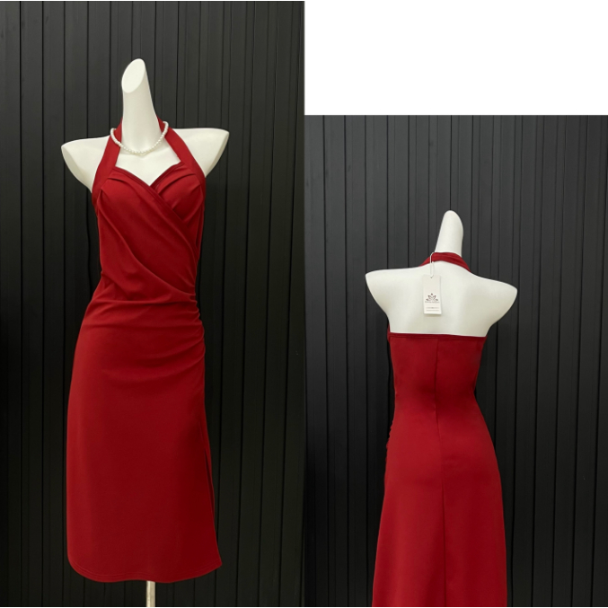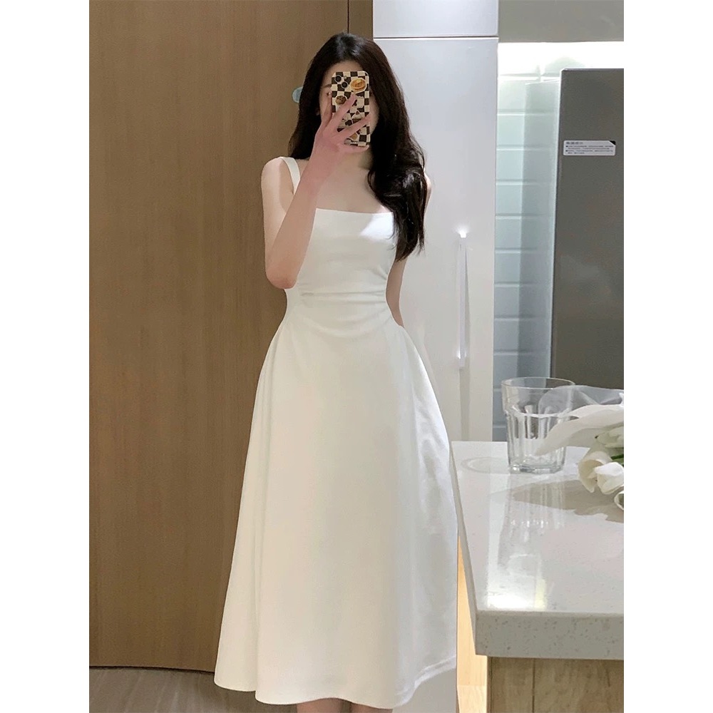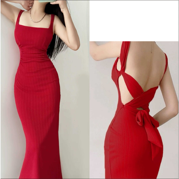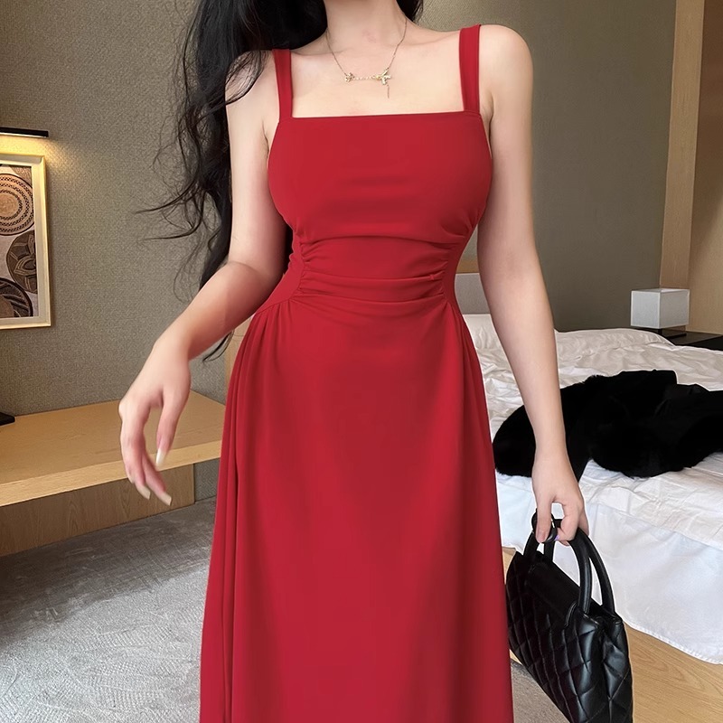 Korean Christmas red dress for woman sleeveless midi vintage dress summer semi formal elegant dress