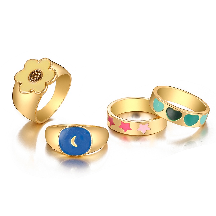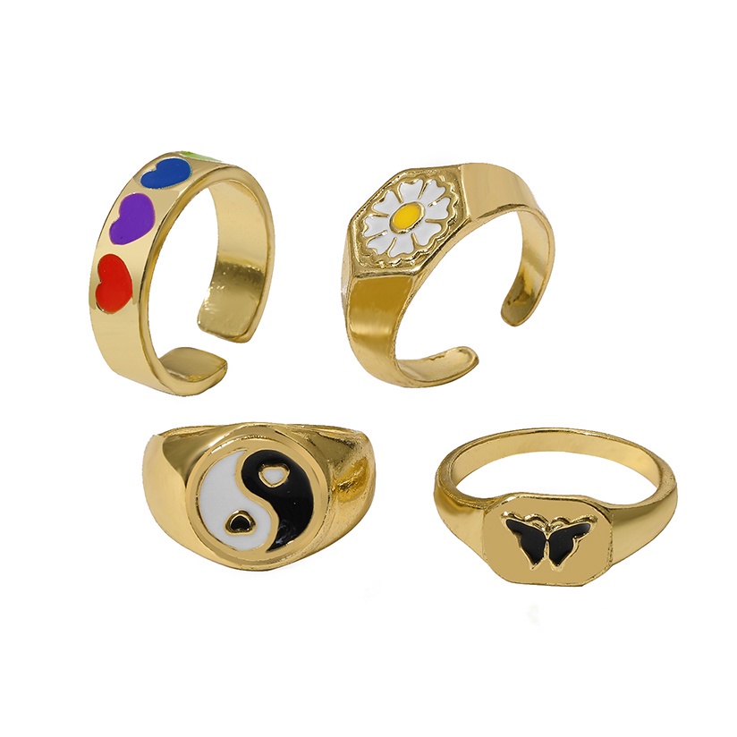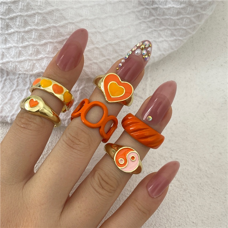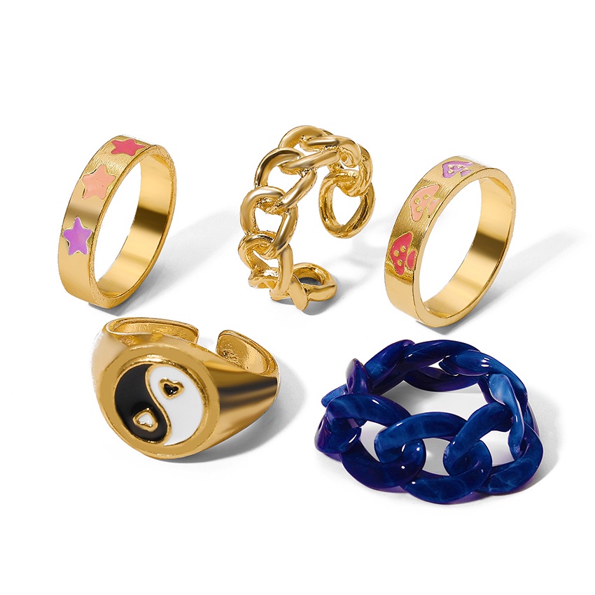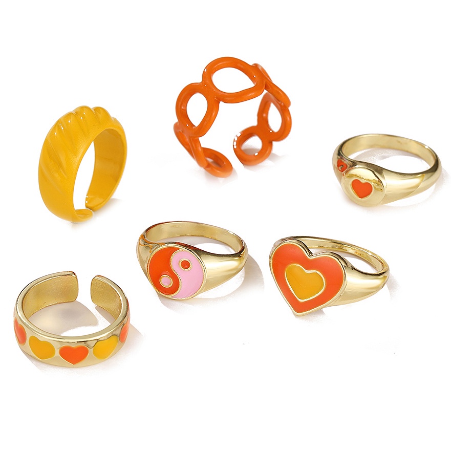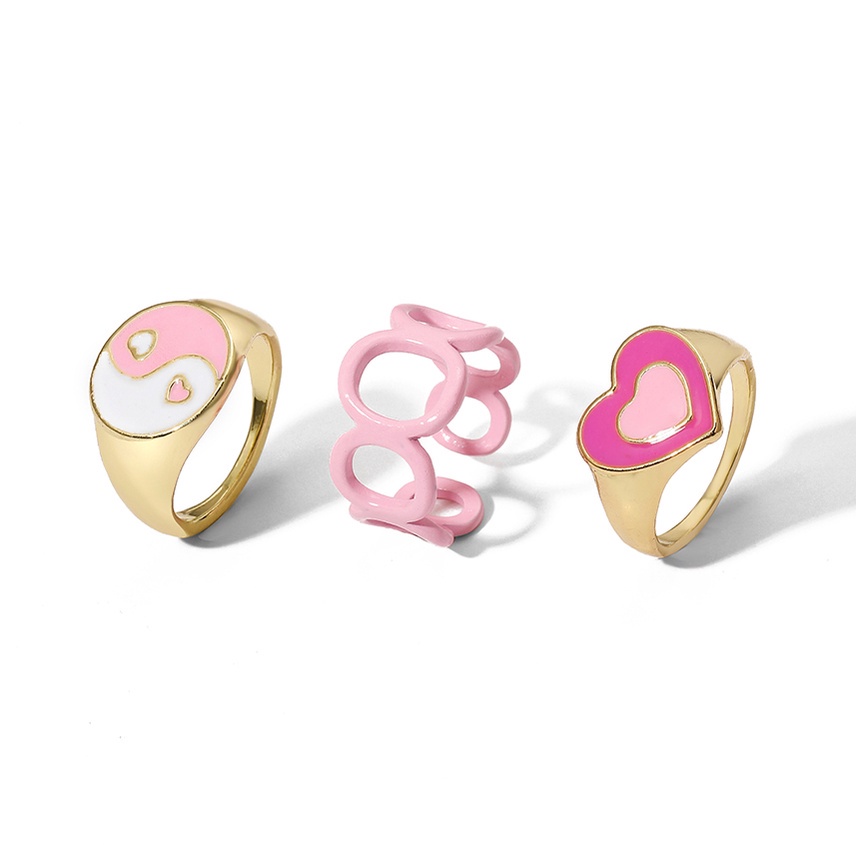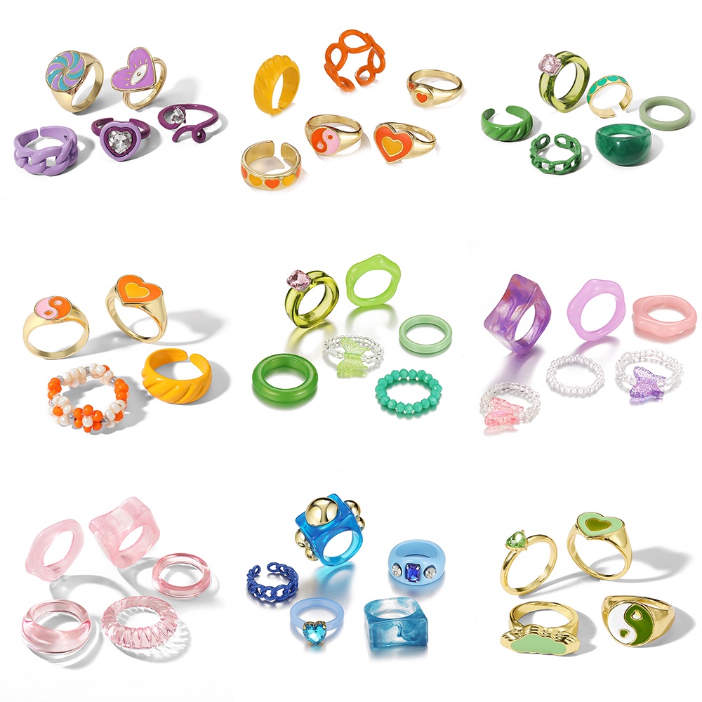 AY (CN) Korean Colorful Resin Ring Set Oil Dripping Flower Heart Tai Chi Beads Finger Women Jewelry