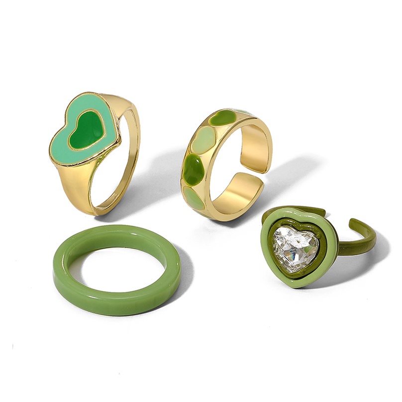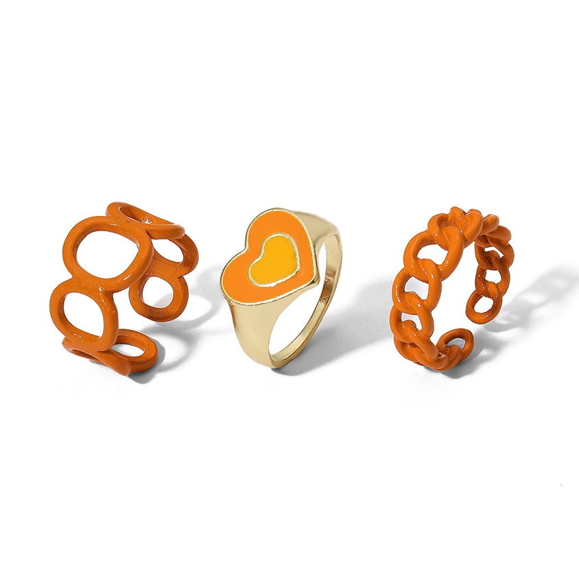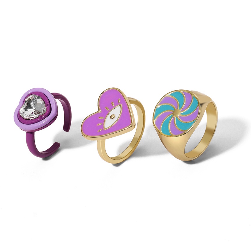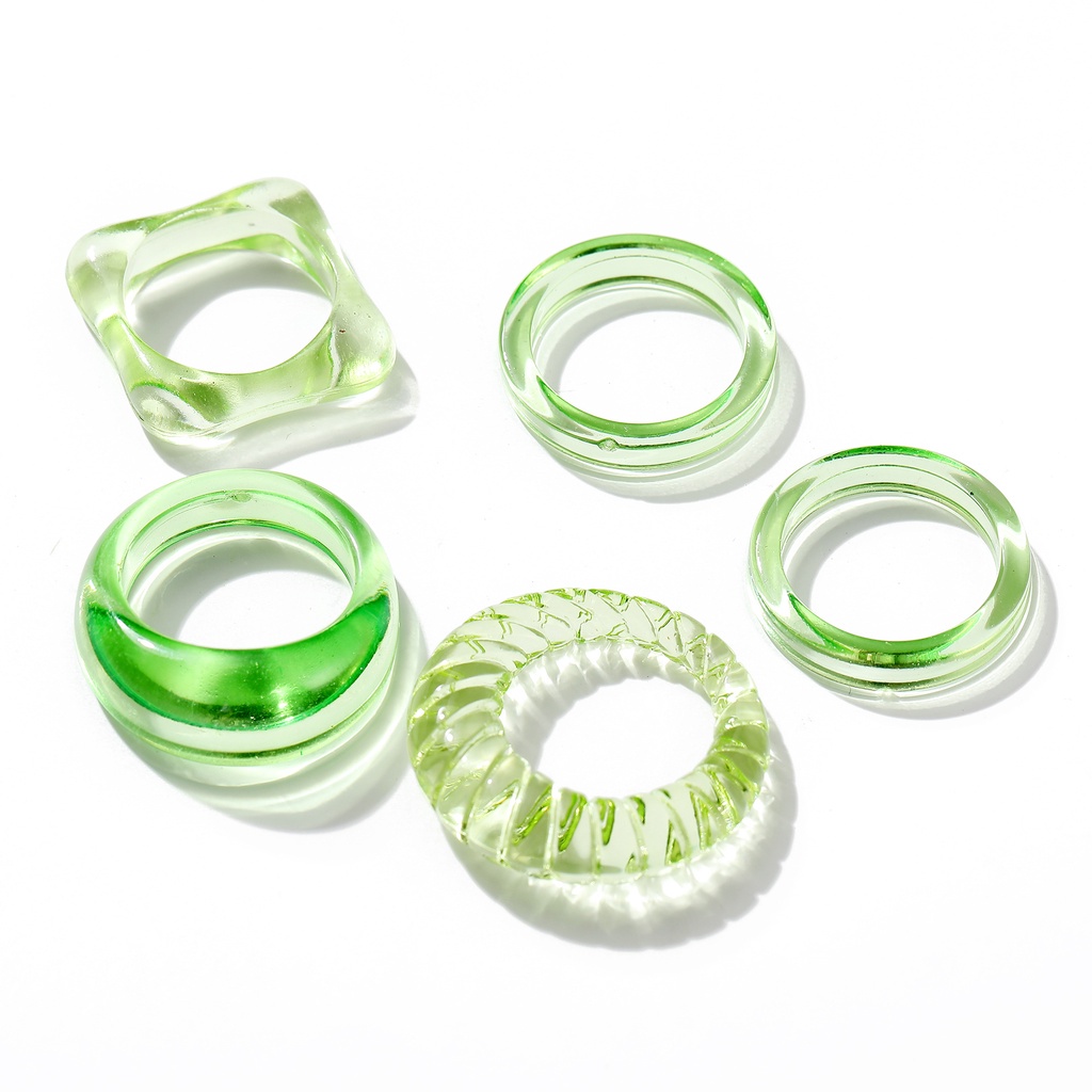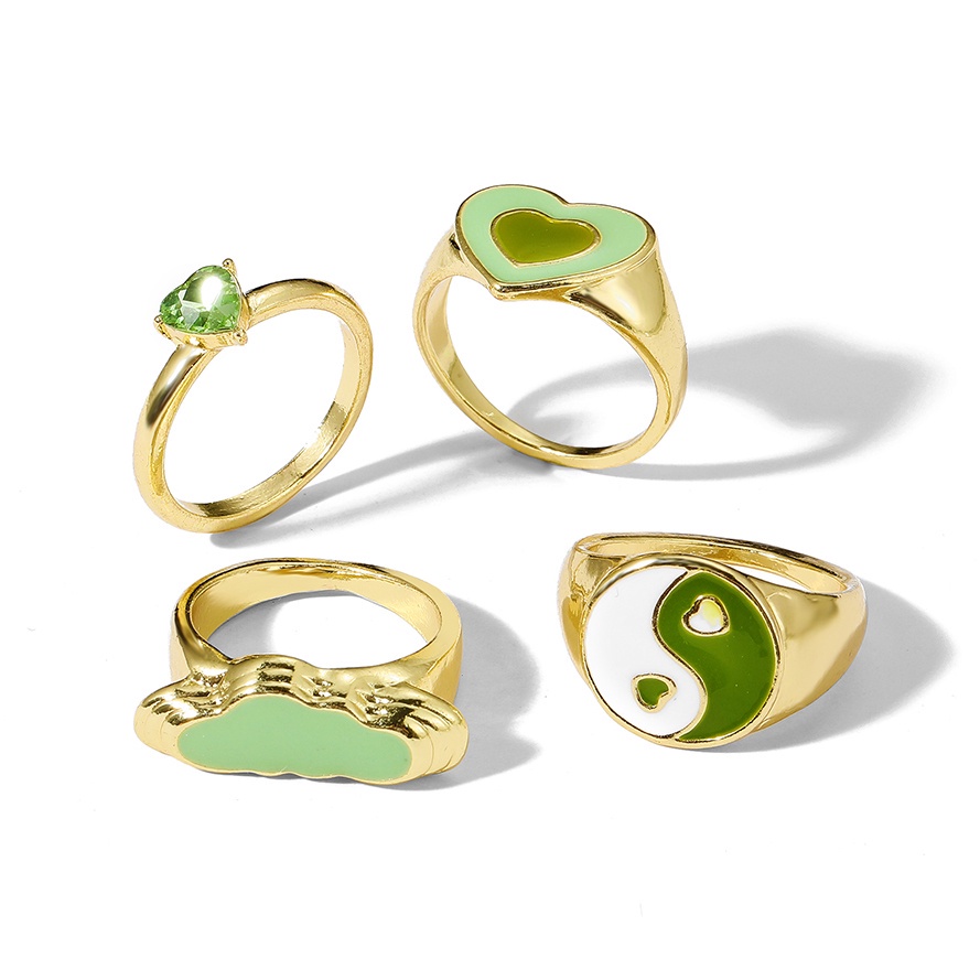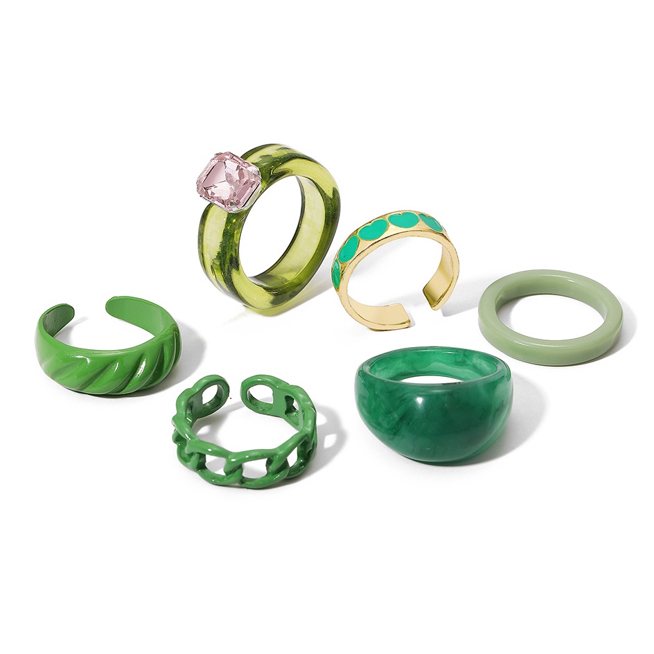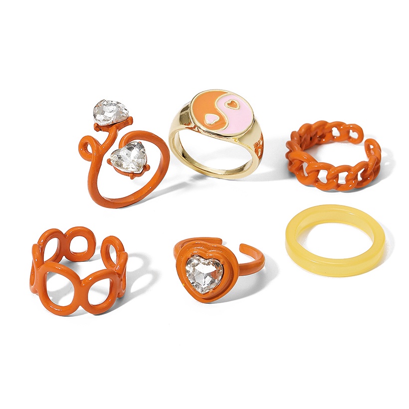 AY (CN) Korean Colorful Resin Ring Set Oil Dripping Flower Heart Tai Chi Beads Finger Women Jewelry