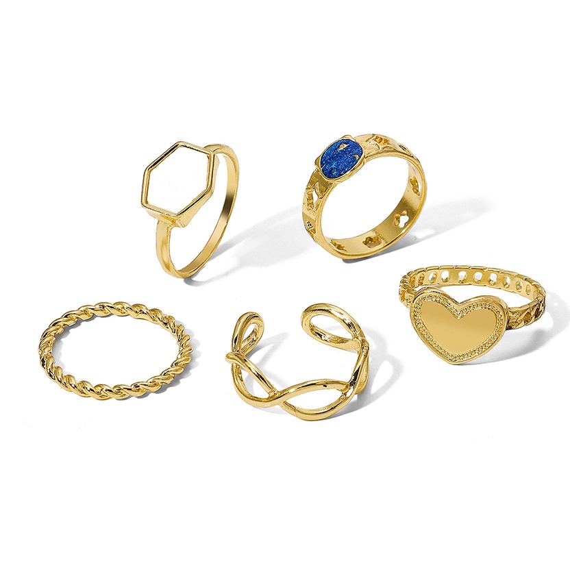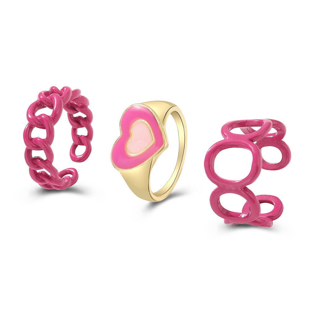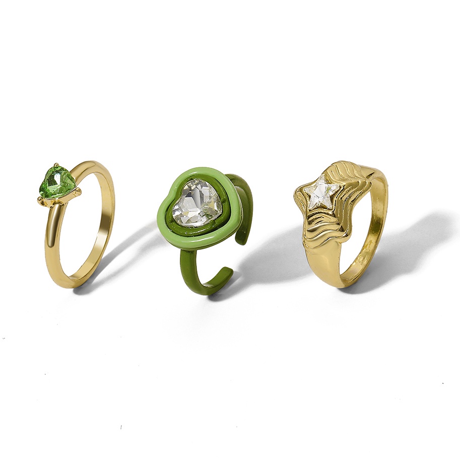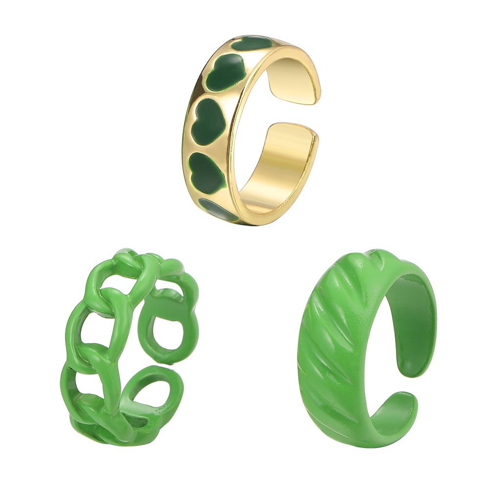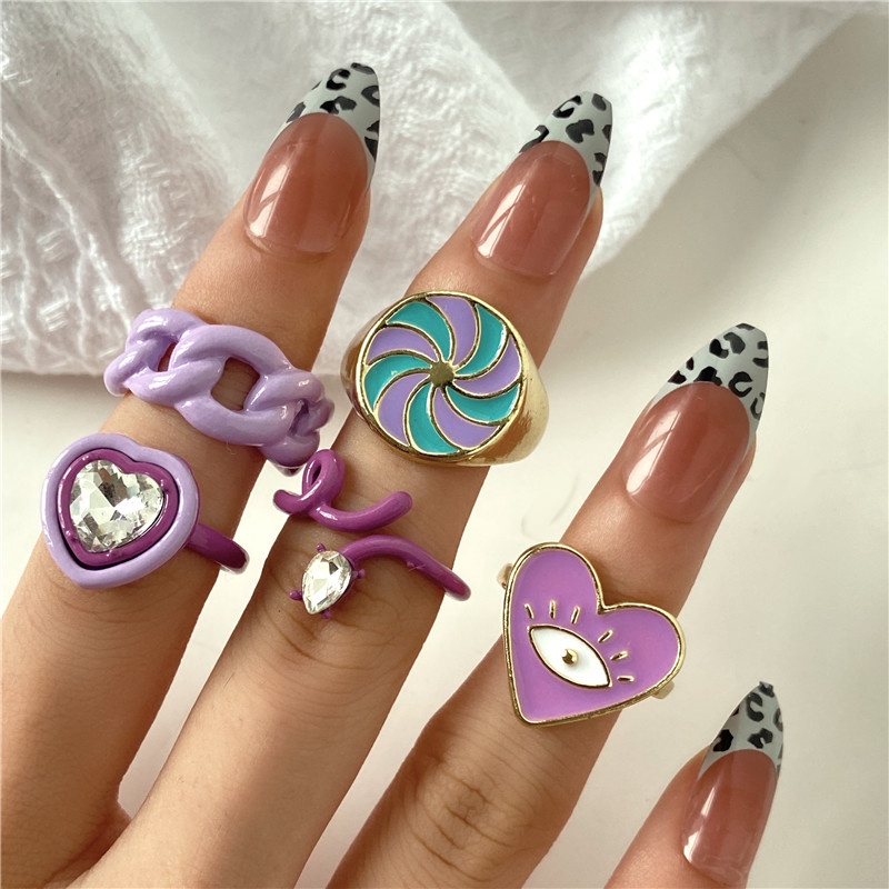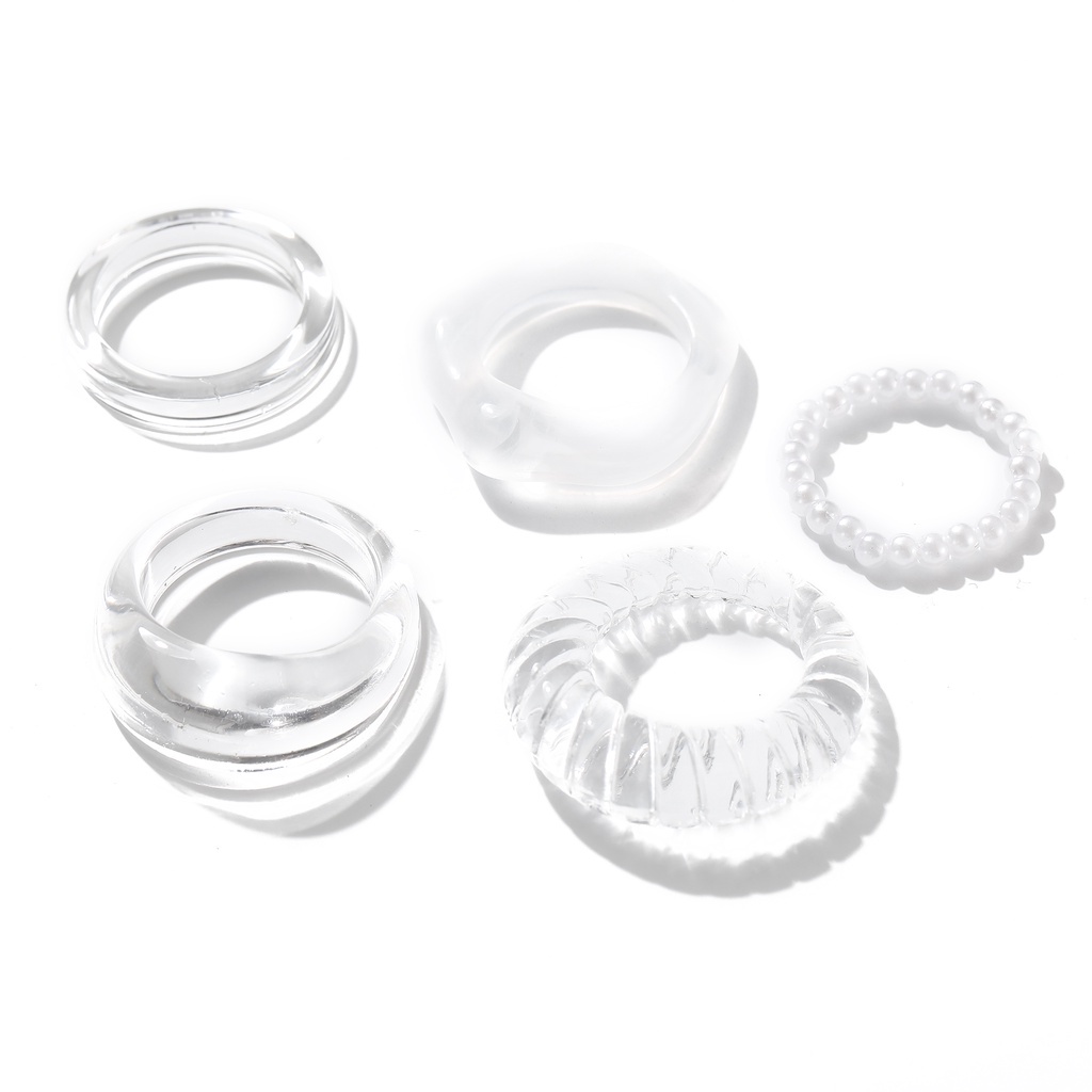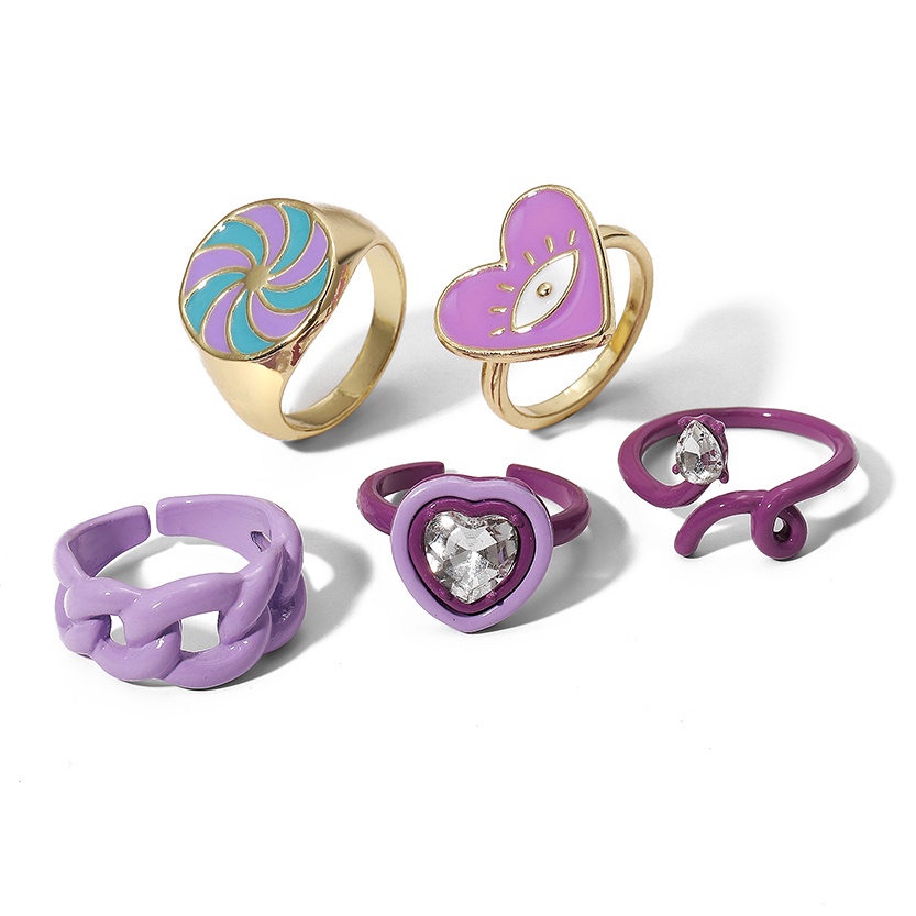 AY (CN) Korean Colorful Resin Ring Set Oil Dripping Flower Heart Tai Chi Beads Finger Women Jewelry