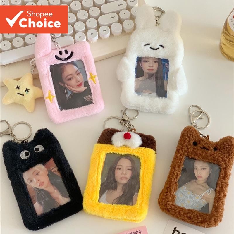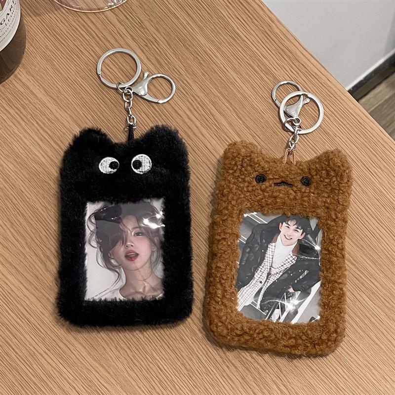 Korean Cute Cartoon Plush Card Holder with Keychain Campus Card Bag Idol Photocard Bus Card ID Credit Card Protective Case Stationery